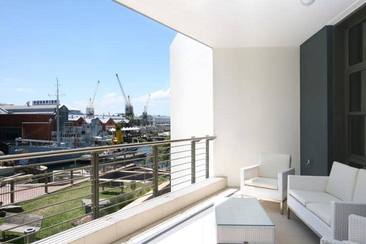 The balcony, with its lovely furniture, gives you the perfect vantage point for views of the gateway to the canals, the Waterfront, aquarium and working harbour.