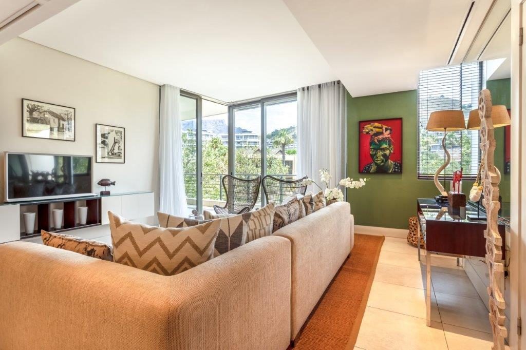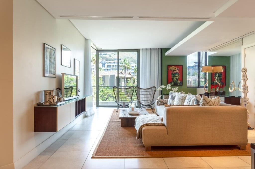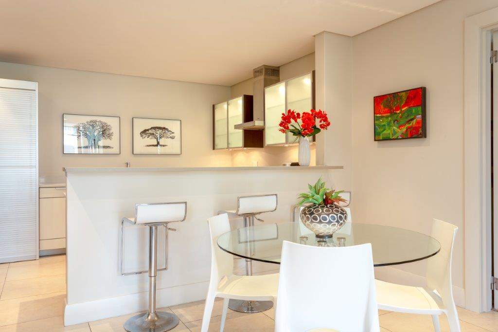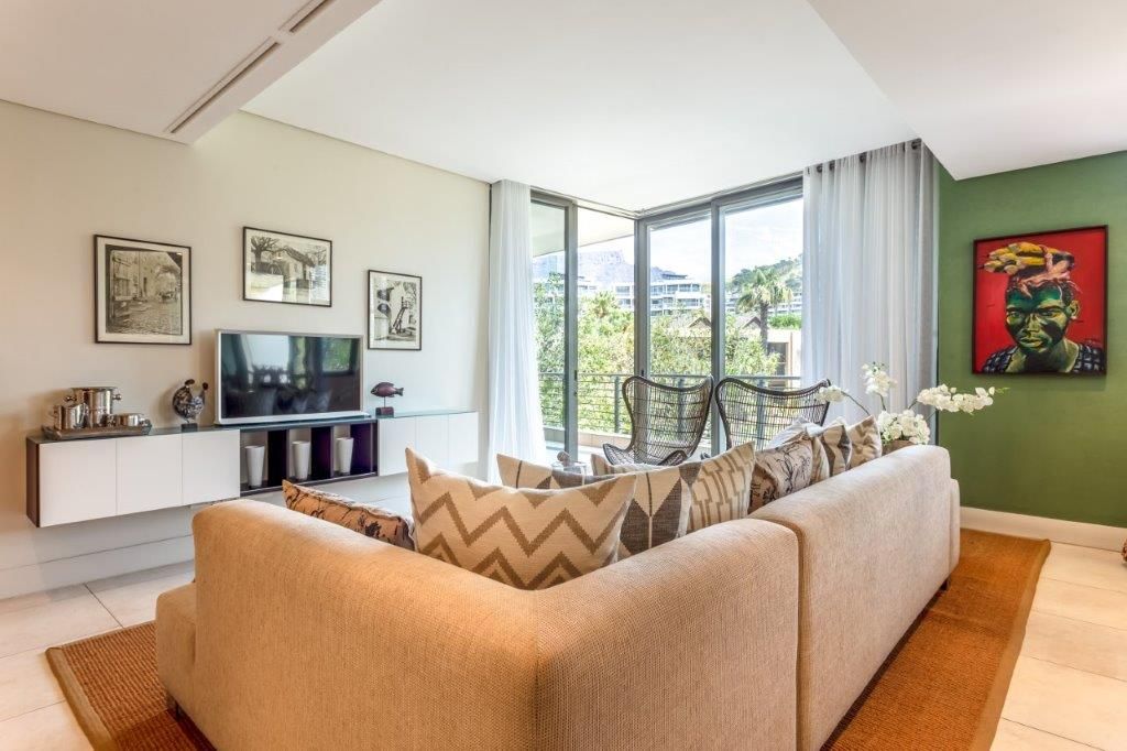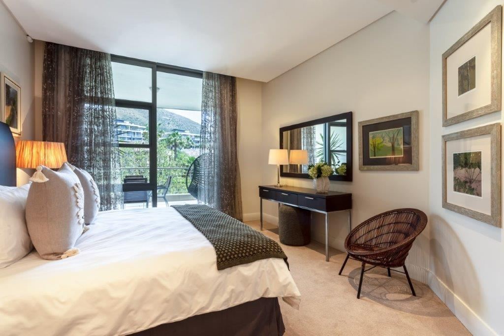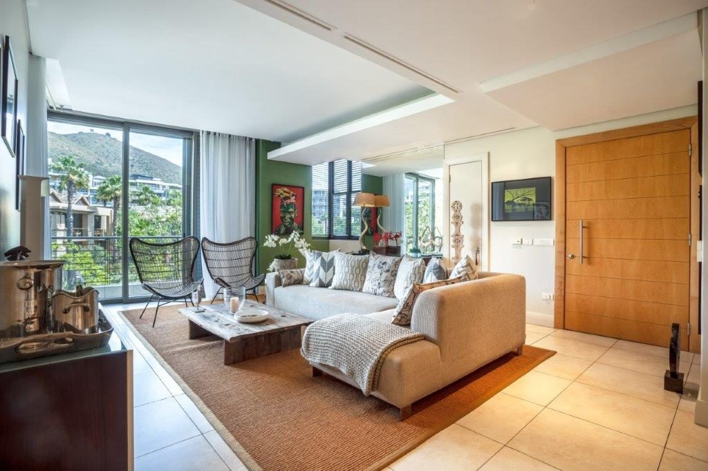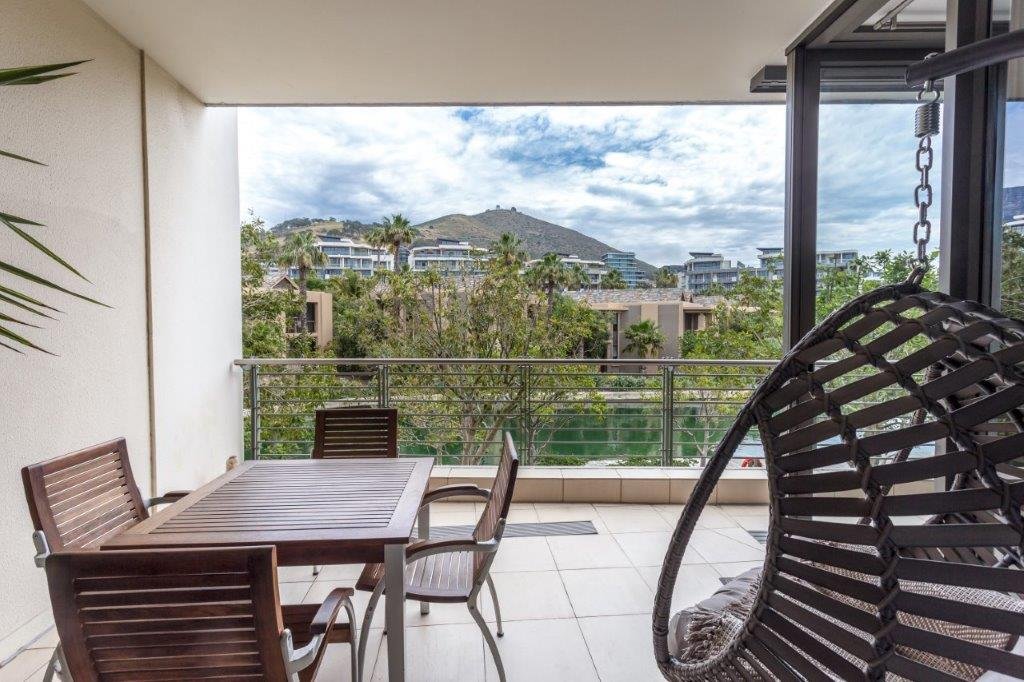 A beautifully appointed, spacious and tranquil canal-side apartment, with massive windows opening onto a full-length view of Table Mountain from the open-plan lounge, and Signal Hill from the en-suite bedroom. Contemporary in feel, original artworks and Eames-style cane aviator chairs will fire your wanderlust, while natural-fibre soft furnishings and a Poggenpohl kitchen equipped with Míele and Zwilling amenities will keep you deeply content to make Cape Town your home from home.