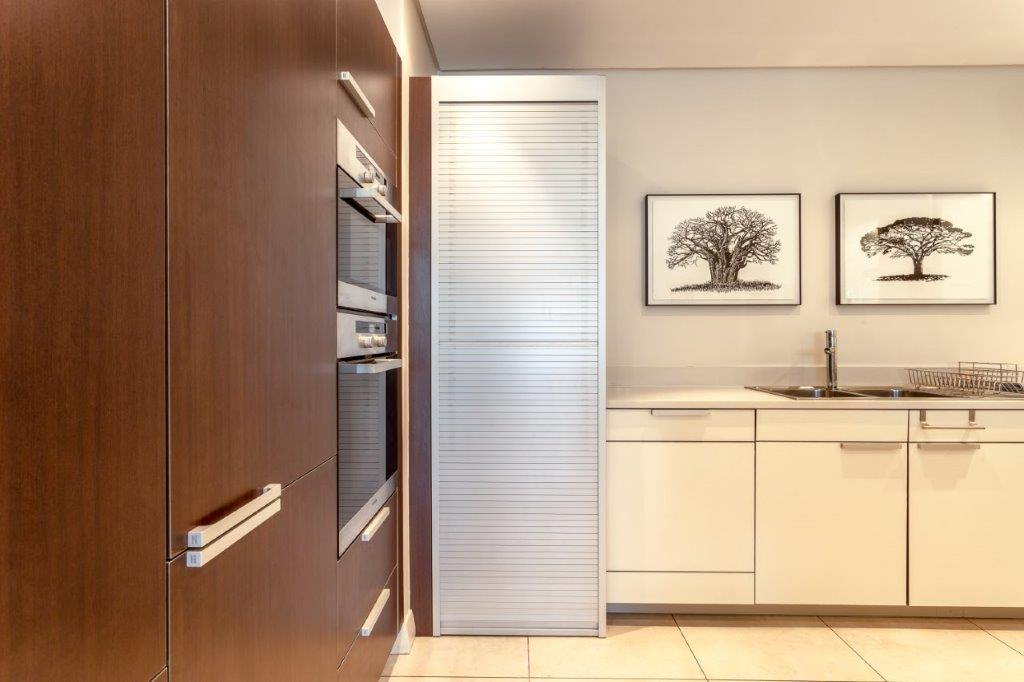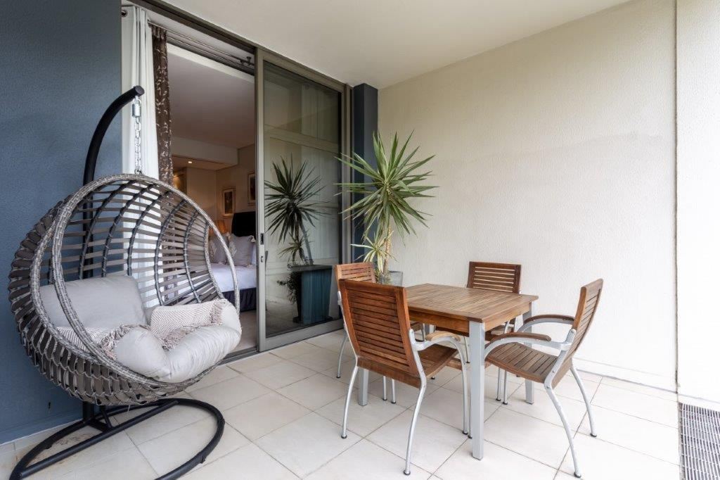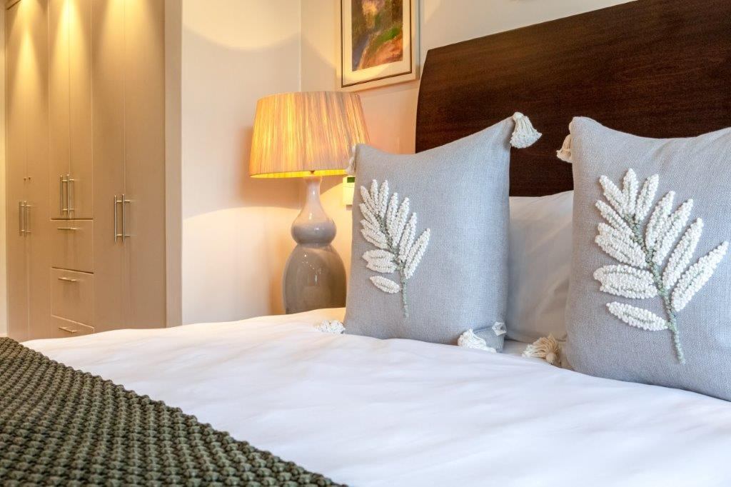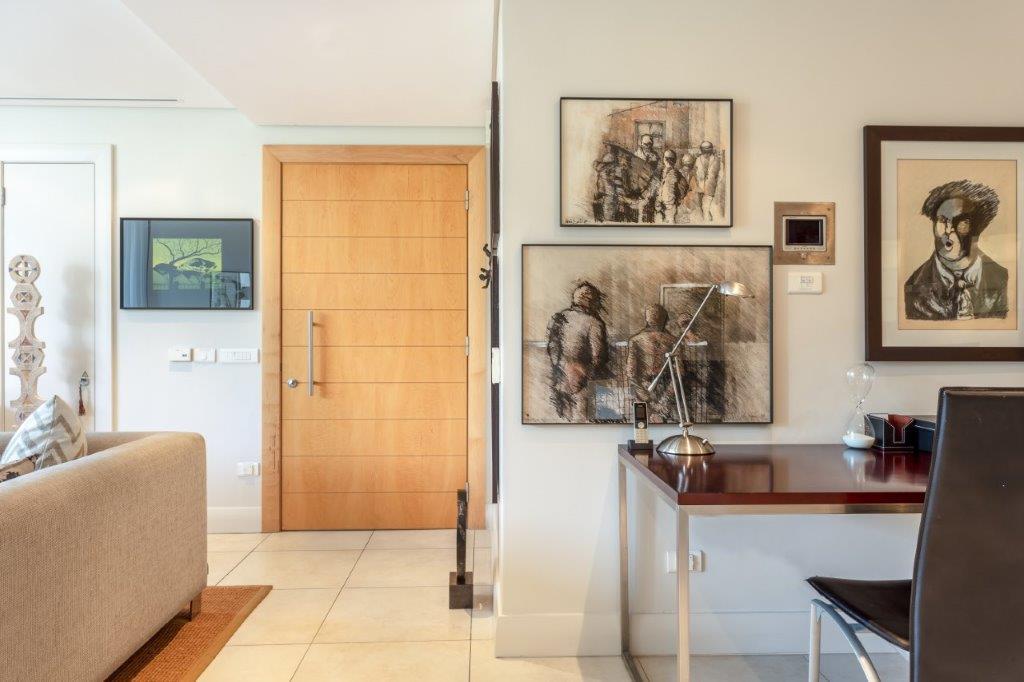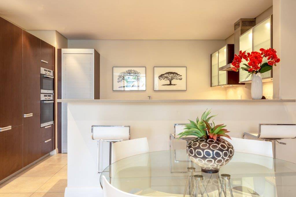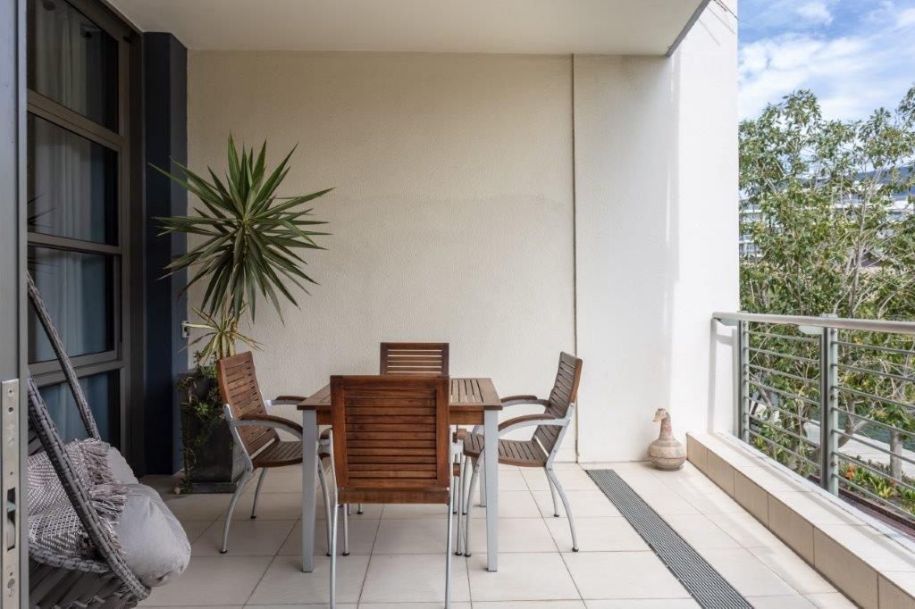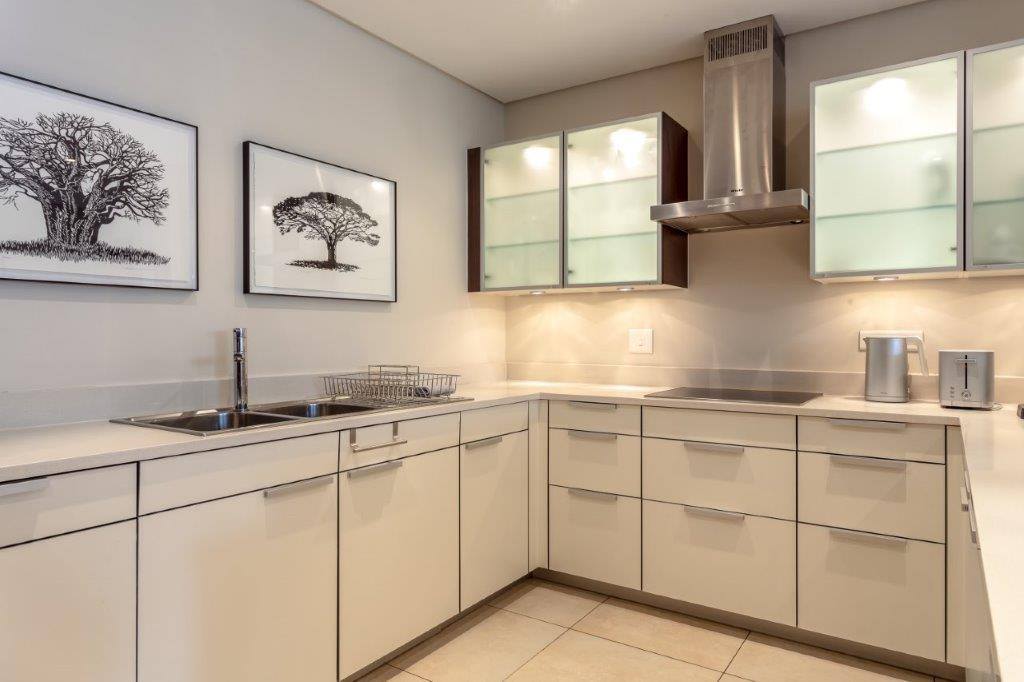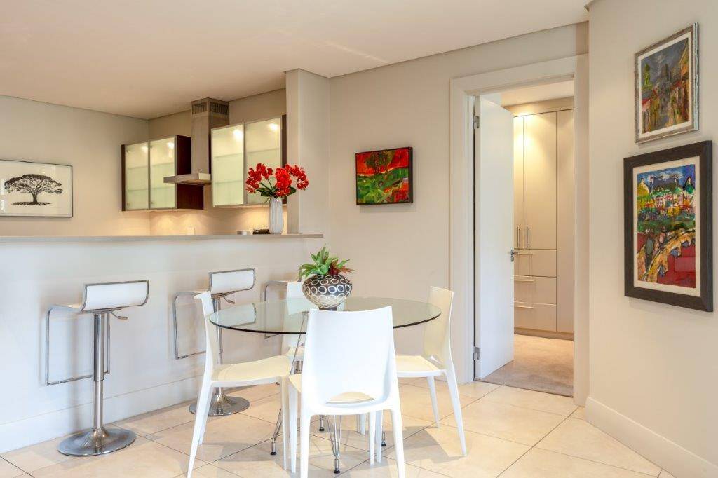 A beautifully appointed, spacious and tranquil canal-side apartment, with massive windows opening onto a full-length view of Table Mountain from the open-plan lounge, and Signal Hill from the en-suite bedroom. Contemporary in feel, original artworks and Eames-style cane aviator chairs will fire your wanderlust, while natural-fibre soft furnishings and a Poggenpohl kitchen equipped with Míele and Zwilling amenities will keep you deeply content to make Cape Town your home from home.