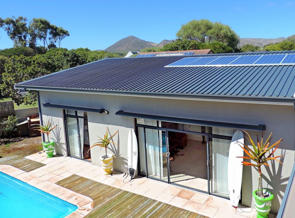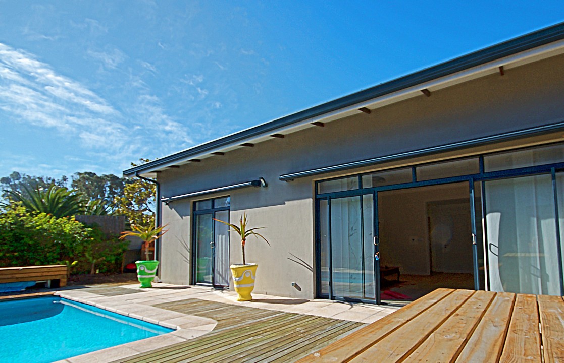 Modern, spacious and secure holiday home with private terrace and pool access in a quiet setting only a short stroll from famous Long Beach in the relaxed village of Kommetjie on the Atlantic coast – the perfect surf and holiday spot in Cape Town.