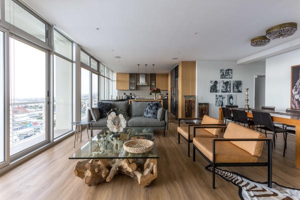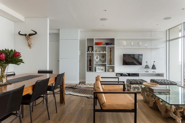 Recently fully renovated with modern fittings and beautifully and fully furnished with the latest that African design has to offer. Stylish and comfortable furniture and carefully curated objects d’art and art complete the modern African look and feel. The living area and kitchen are open plan and the kitchen is fully equipped, including Nespresso machine. There is air-conditioning throughout the apartment. The main bedroom has a queen size bed and the guest bedroom has two singe beds that can be converted into a double bed. Both bedrooms are en-suite with bath and shower.