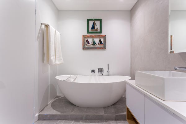 The living area and kitchen are open plan and the kitchen is fully equipped, including Nespresso machine. There is air-conditioning throughout the apartment. The main bedroom has a queen size bed and the guest bedroom has two singe beds that can be converted into a double bed. Both bedrooms are en-suite with bath and shower.