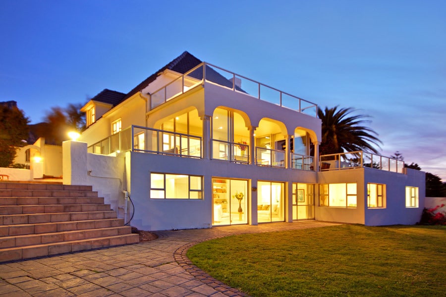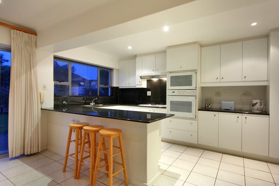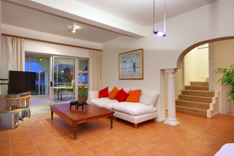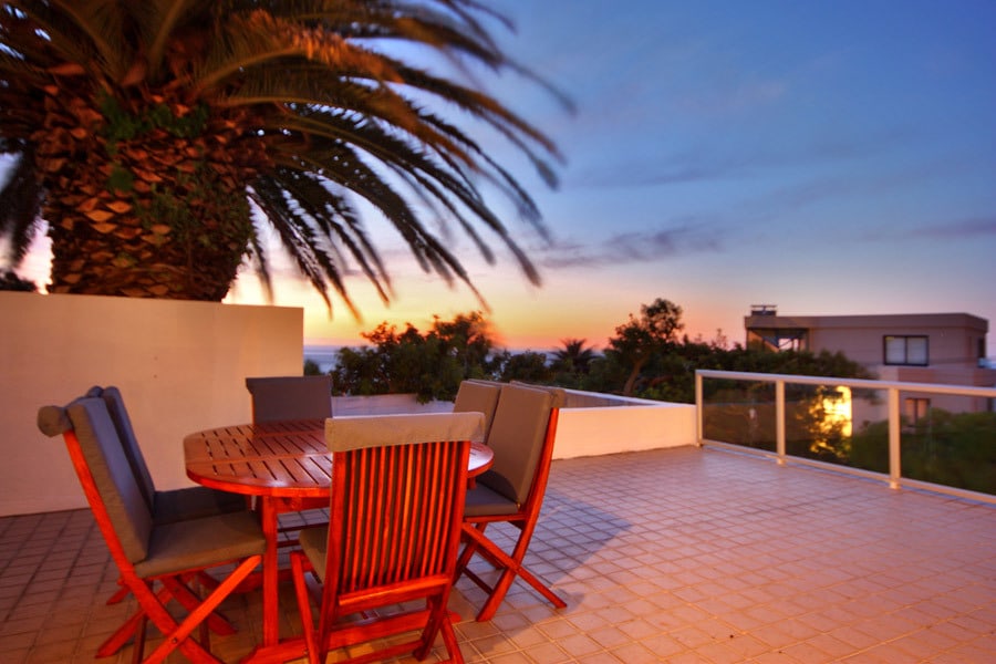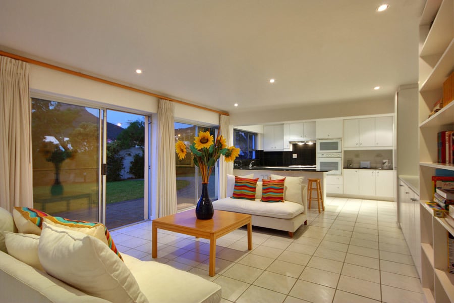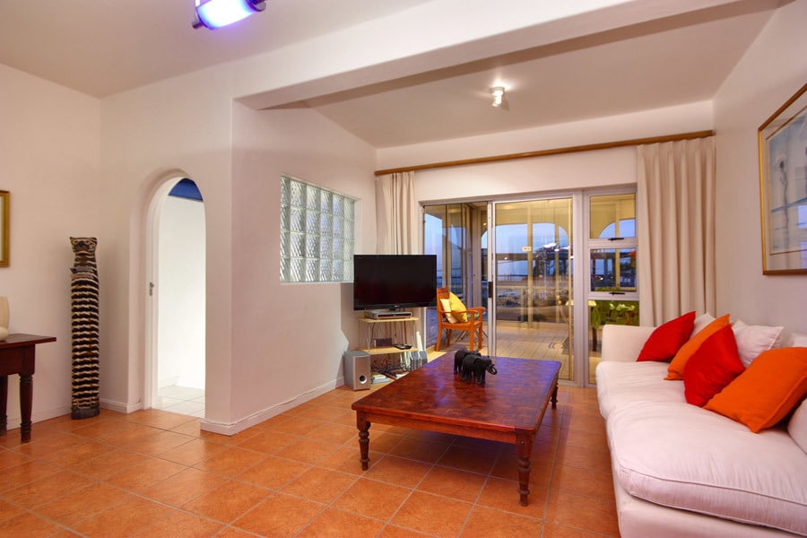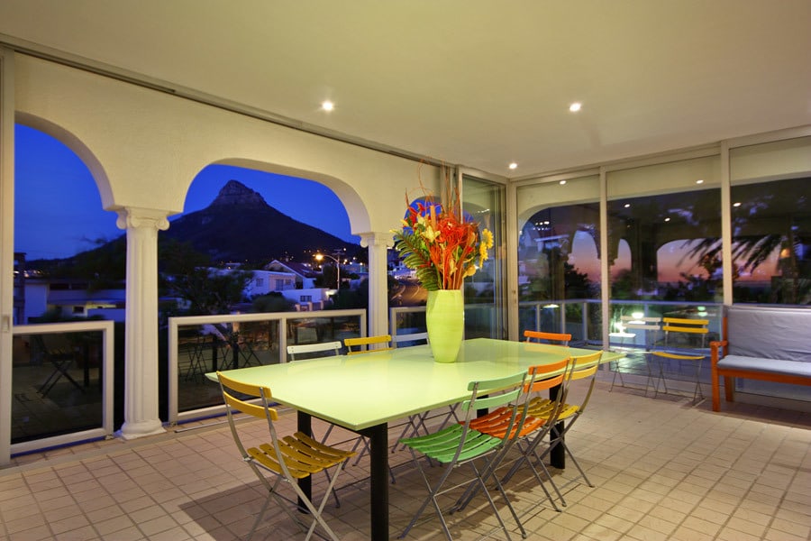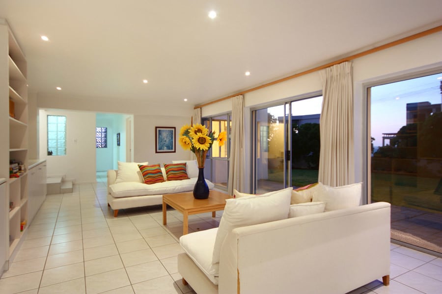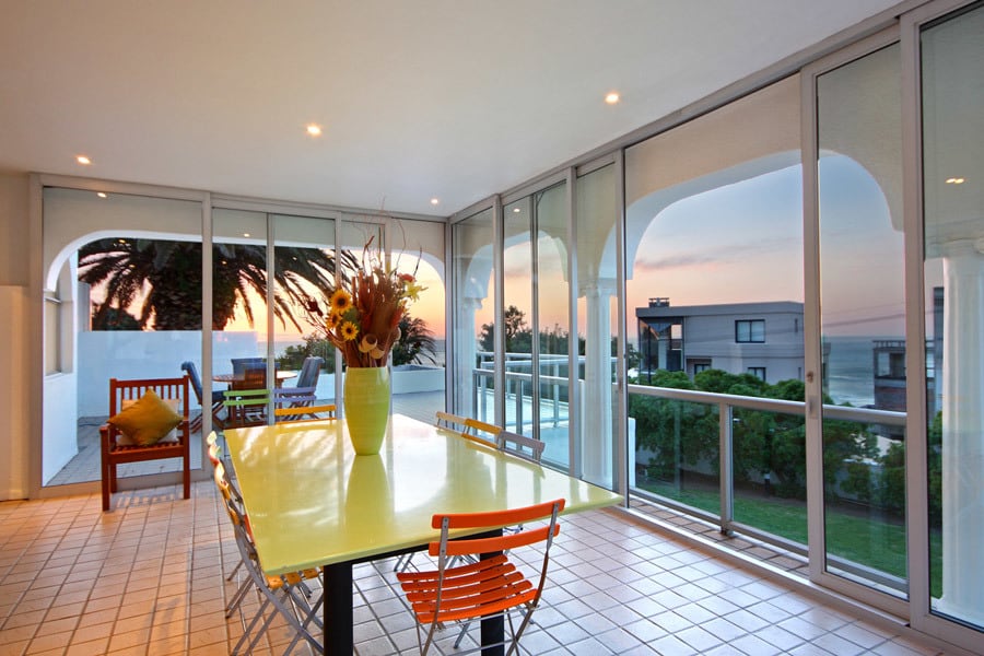 This spacious, clutter-free Camps Bay villa lets in plenty of natural light, especially the middle level where the enormous sun room lets guests enjoy the feeling of space and light while being protected from the wind and the elements.