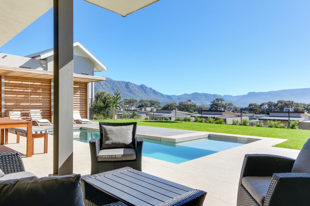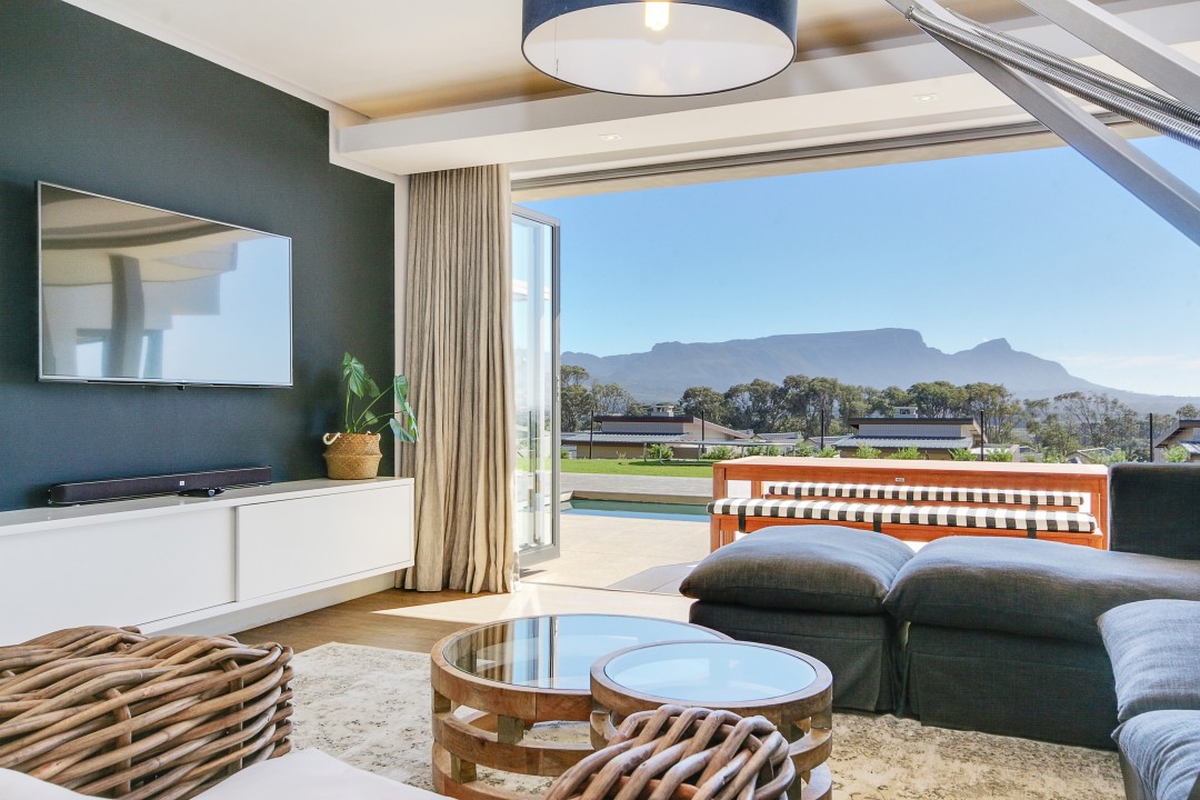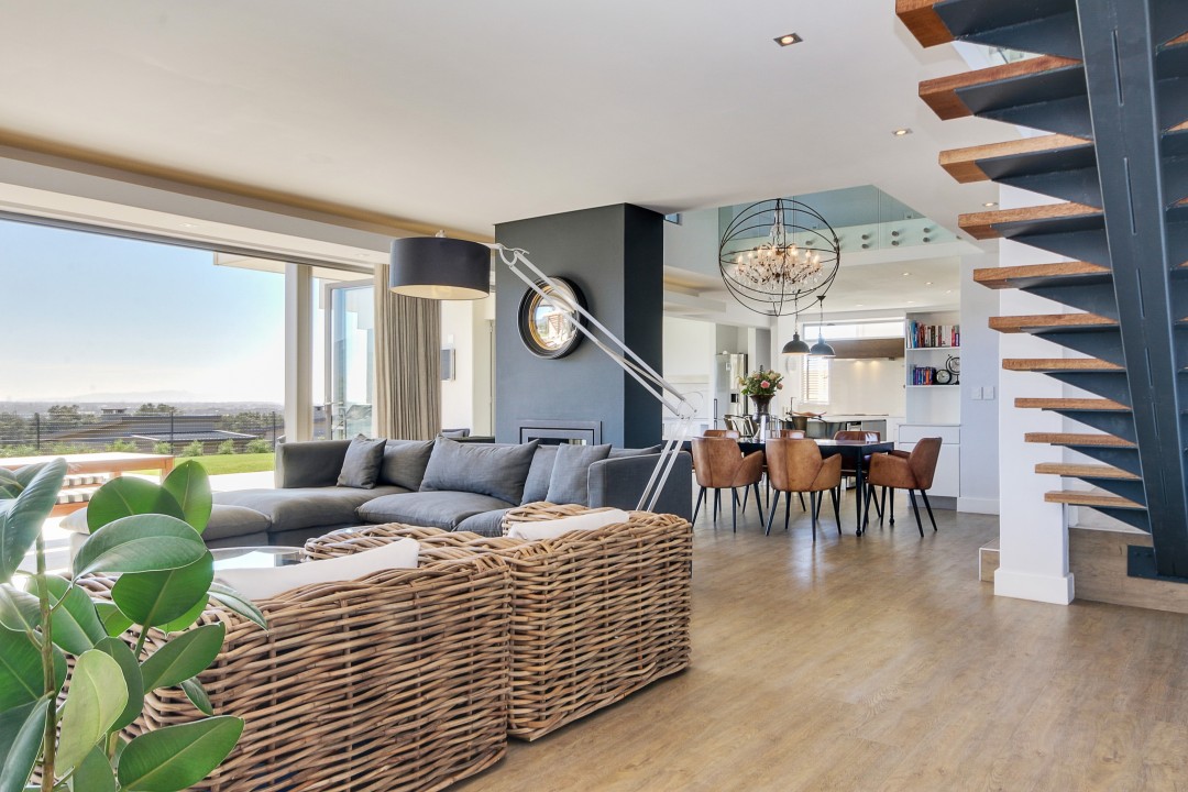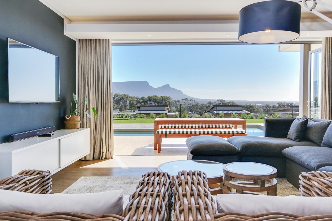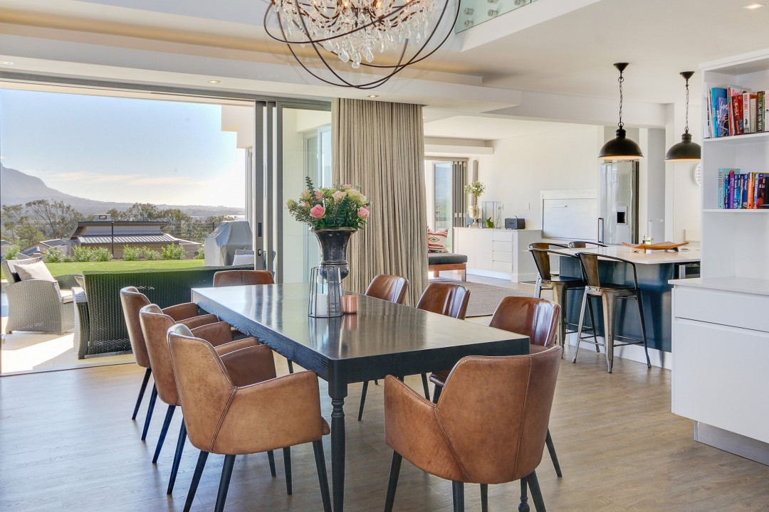 This modern, tastefully decorated home has plenty of space and an uninterrupted view of Constantia and Devils Peak. Piketberg Villa has a majestic feel to it, with multiple entertaining spaces and 4 en-suite bedrooms. There is a large patio for alfresco dining and a beautiful garden and swimming pool. This stunning home in Stonehurst Mountain Estate is so peaceful and tranquil and provides a really special home for its guests.