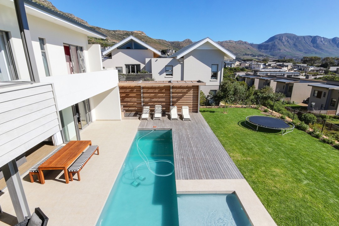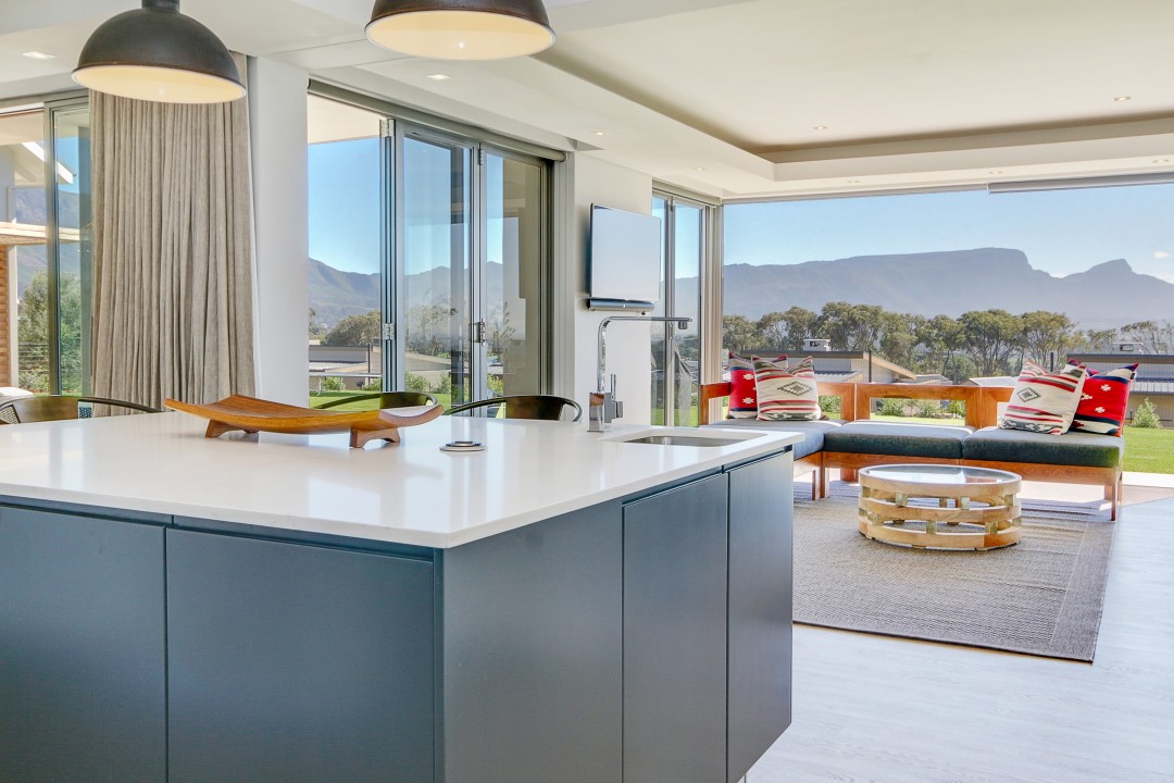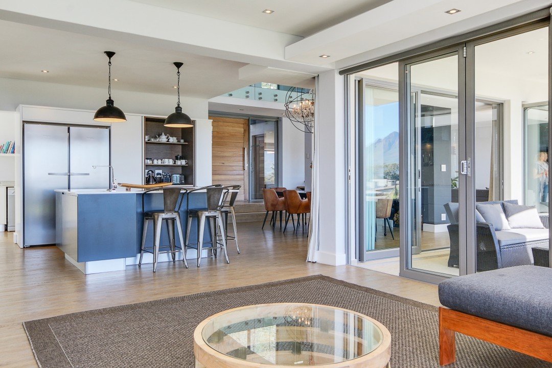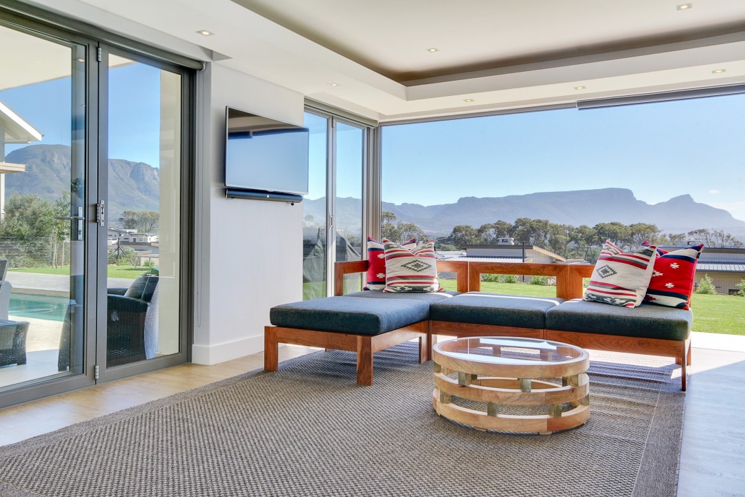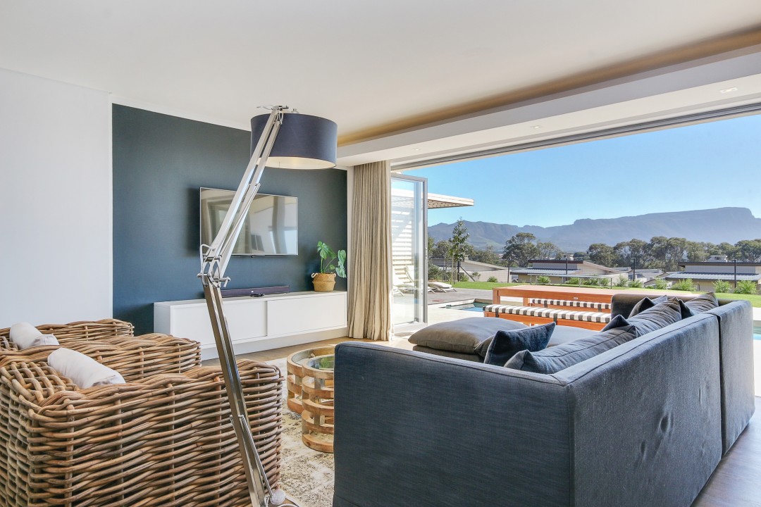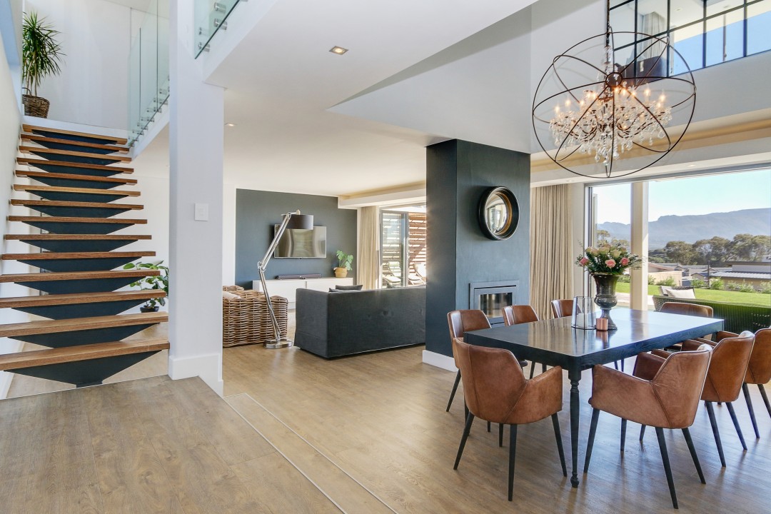 This modern, tastefully decorated home has plenty of space and an uninterrupted view of Constantia and Devils Peak. Piketberg Villa has a majestic feel to it, with multiple entertaining spaces and 4 en-suite bedrooms. There is a large patio for alfresco dining and a beautiful garden and swimming pool. This stunning home in Stonehurst Mountain Estate is so peaceful and tranquil and provides a really special home for its guests.