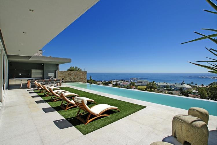 This villa is of the highest quality in both its design and finish, being ultra-modern throughout it offers a sense of sophistication. The villa comprises of 6 bedrooms all with en suite bathrooms, I-Pod docking stations and a spacious balcony with amazing views of both Lions Head and of the beach beyond the palm-fringed promenade. Connecting the 2 large master suites situated on the top floor enjoys the use of the glass framed outdoor Jacuzzi. A heated infinity pool stretches the length of the property and seamlessly flows into the horizon. Sun loungers are positioned neatly along the perfect green grass overlooking the pool and views of magical sunsets. Mood enhancing light fittings and surround sound systems plays throughout the house. This villa is perfect for entertaining as it boasts a Pizza oven, Gas BBQ and ample patio furniture for outdoor entertainment.