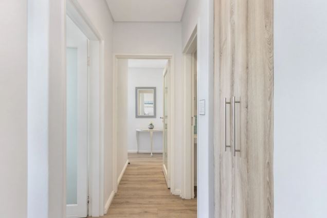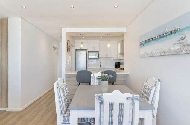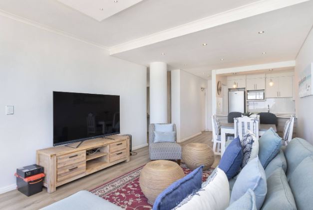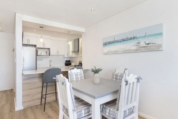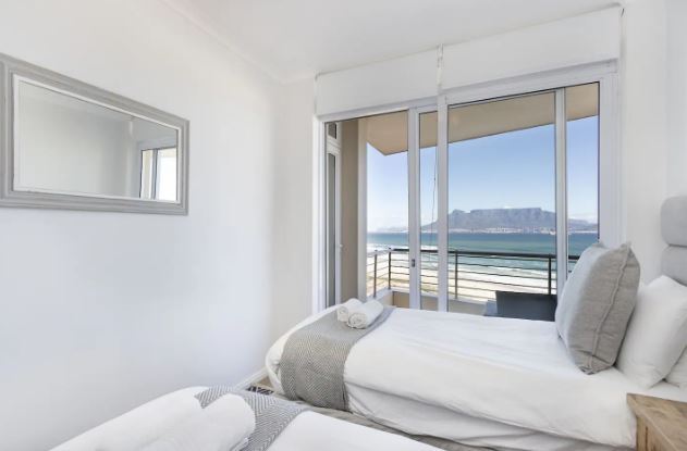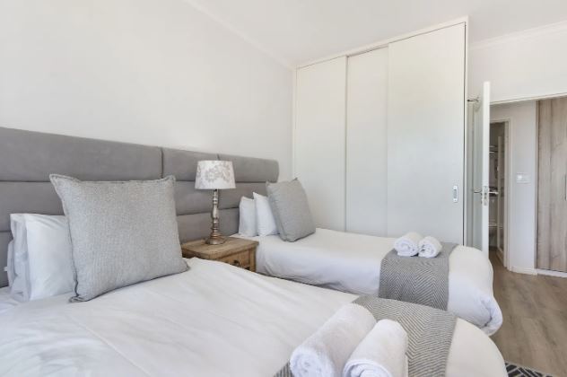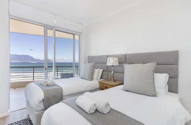 This exquisite 2 bedroom unit is perfect for a group of friends or a family looking for an unforgettable self-catering stay. The open-plan living space exudes relaxation, offering a fully equipped kitchen with all the culinary essentials, a dining area that comfortably seats four people, and cozy lounge area with a flat-screen TV where you can kick up your feet and switch off from the day-to-day stresses. Leading out from the lounge, through glass sliding doors is a gorgeous undercover balcony with outdoor furniture where you can sit for hours taking in the fresh sea breeze and breathtaking views of Table Mountain and the long stretch of majestic beaches.