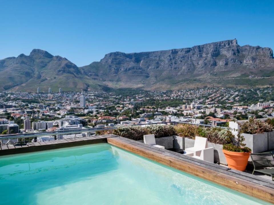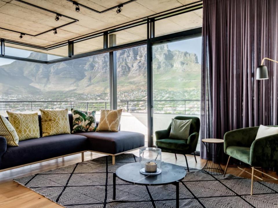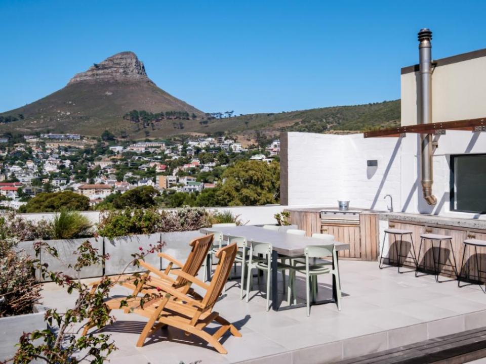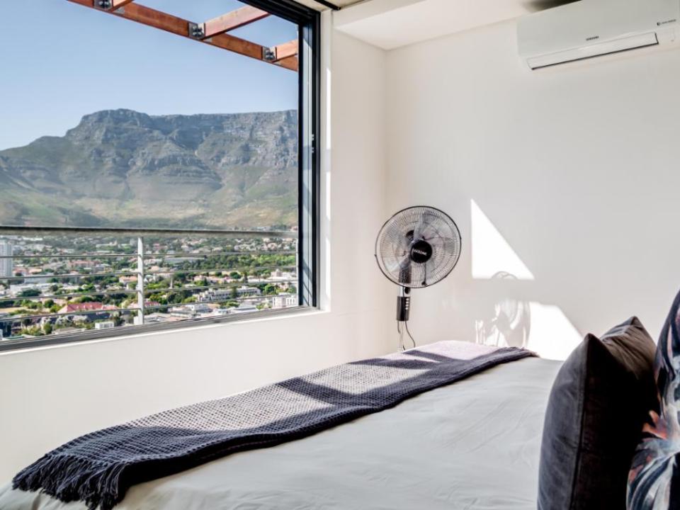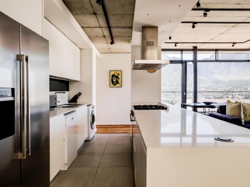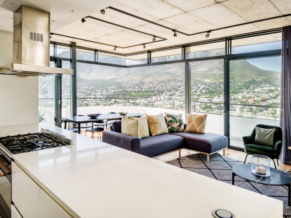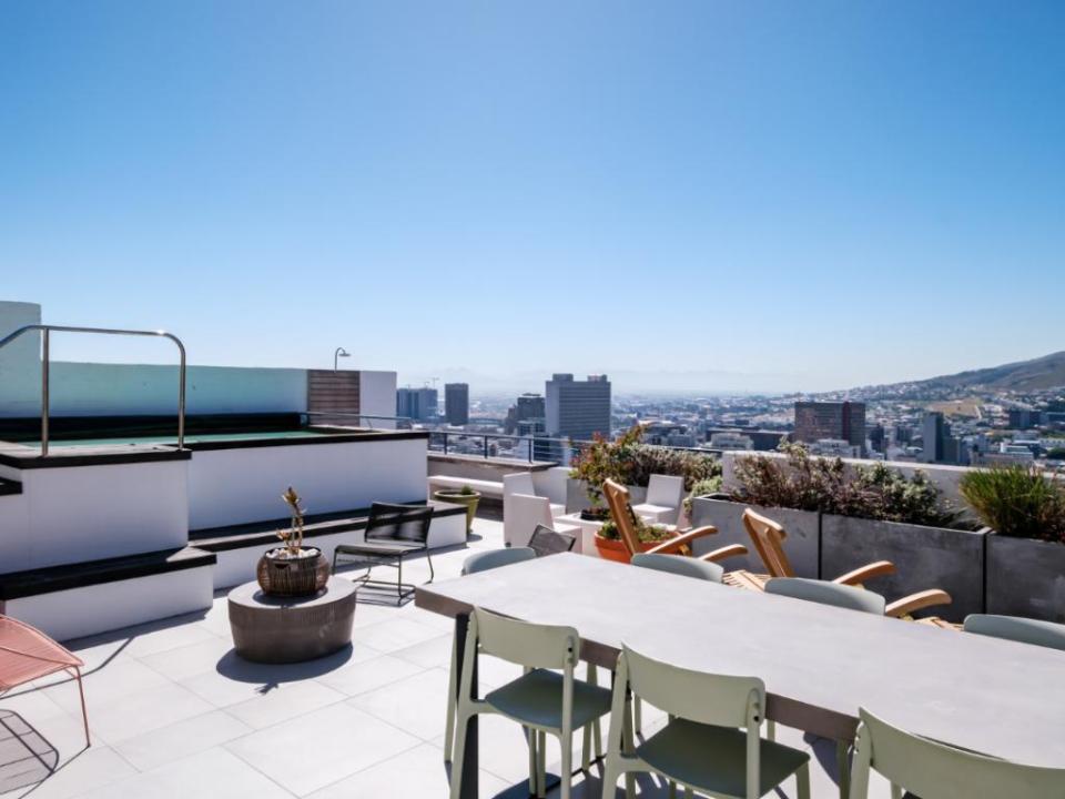 This beautiful 3 bedroom penthouse has amazing city views and also overlooks the magical Table Mountain and Lions Head. The open-plan living area and comfortable seating to relax or enjoy a meal together. This space also has a wrap-around balcony. The fully fitted kitchen is perfect for a holidaymaker. Two of the bedrooms have spectacular views. The bedrooms all have plush beds and a bathroom of their own. There is an incredible rooftop deck where you can enjoy a private swimming pool, outdoor seating and dining, and panoramic views of Cape Town.