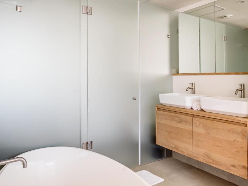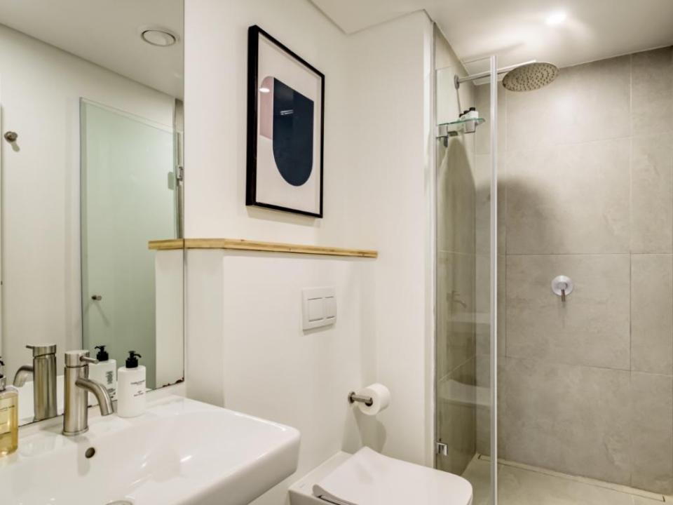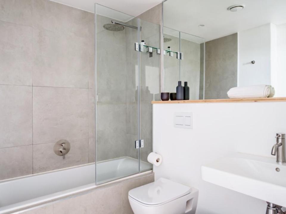 - Dedicated bathroom with shower over bath and single vanity