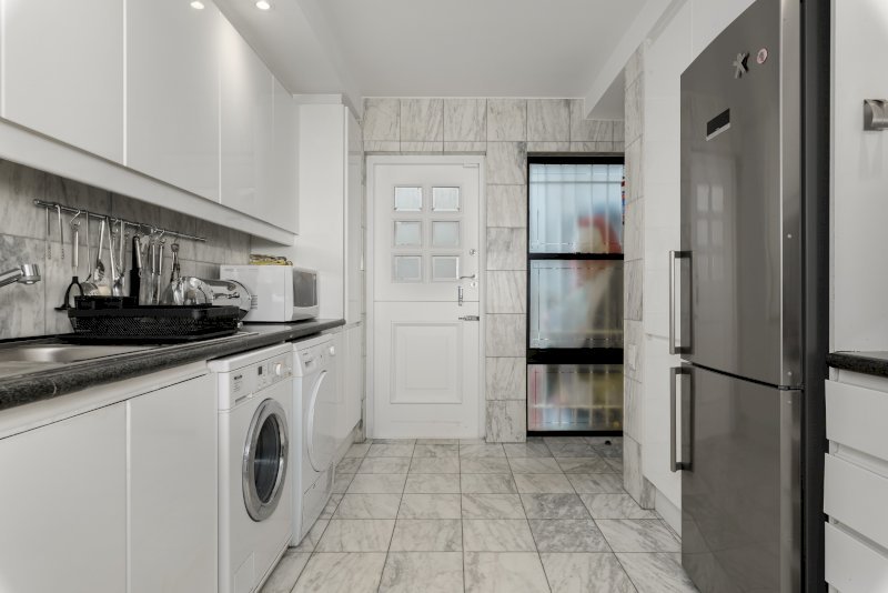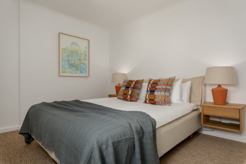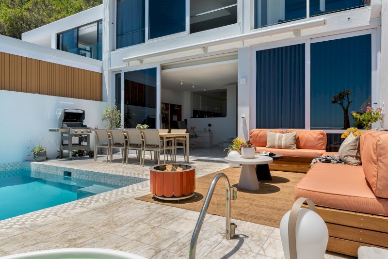 The interiors are modern and thoughtfully curated, blending comfort with clean design. An open-plan layout allows for effortless living, whether enjoying a quiet morning coffee at the kitchen island or an evening meal at the dining table. The atmosphere is relaxed yet refined — a private escape within easy reach of the vibrancy of the city.