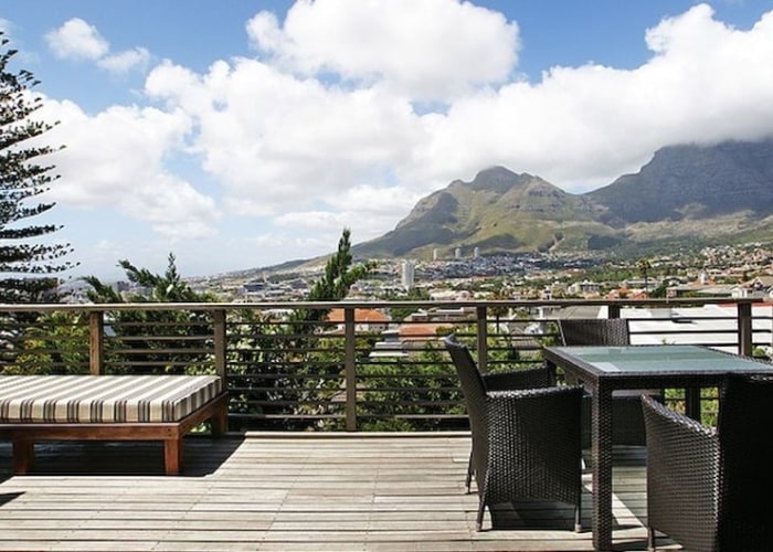 There is a wonderful outdoor deck with outdoor furniture and views of Table Mountain.