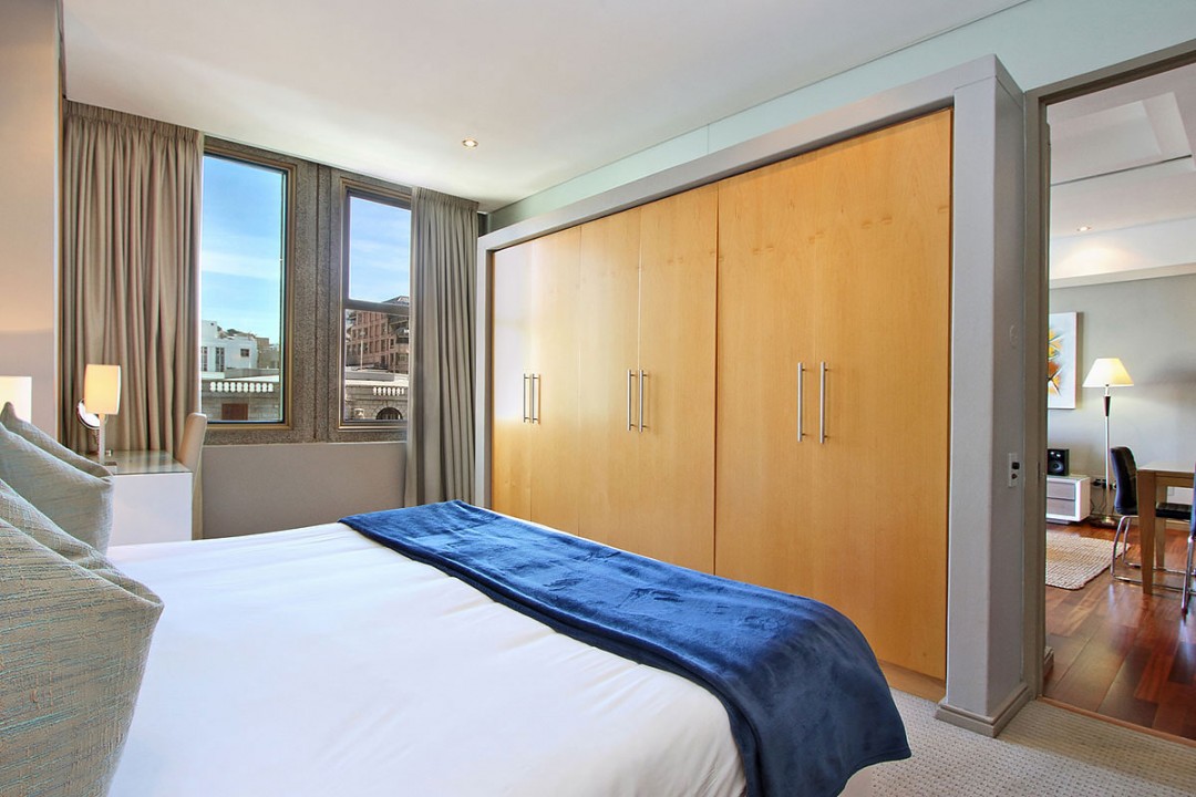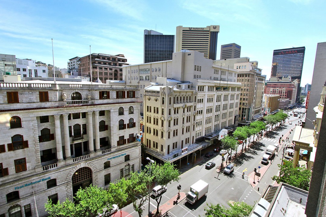 It is ideal for holiday and business travellers, spacious, sunny and bright, with views of Adderley Street.