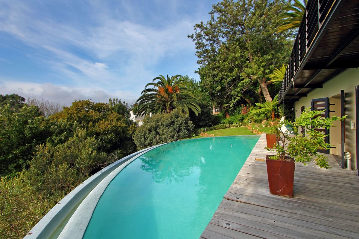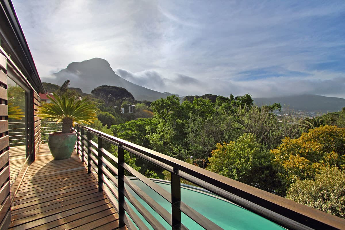 The master bedroom and loft entertainment area have air conditioning for added comfort during the glorious summer months. Enjoy long summers days on the deck beside the large sparkling infinity pool, relaxing on sun loungers or on a swing chair. Freshen up in the pool after sun-filled days on the beach. Lovely balcony with comfortable seating and spectacular views over the Mother City. The shaded back garden with barbeque provides a tropical environment for al fresco dining. Soak in the romantic city lights in the evening from this private and secure home.