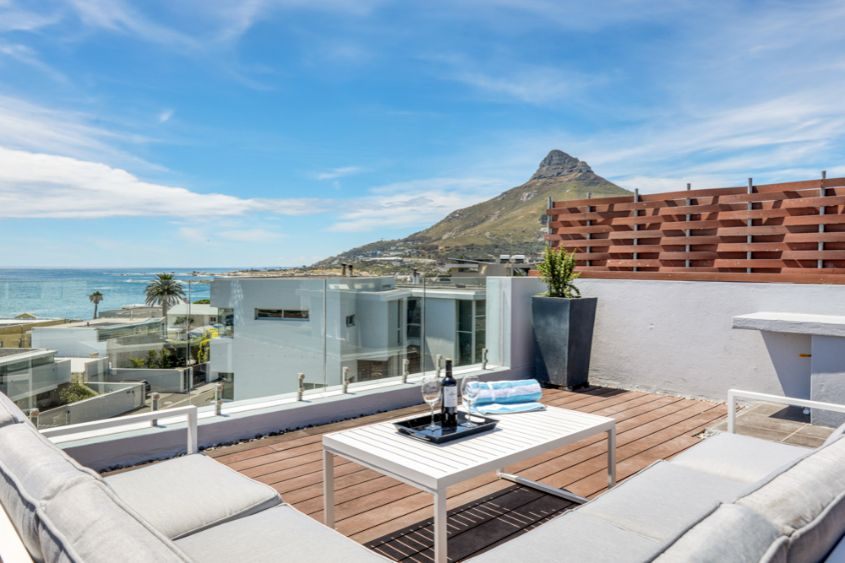 As you walk along the decked landing to the top terrace you are greeted with the most exquisite 180 degree views over the Atlantic. The roof terrace is large with a covered outdoor dining space to seat 8 guests. From the terrace, you will be able to enjoy watching the most exquisite sunsets.