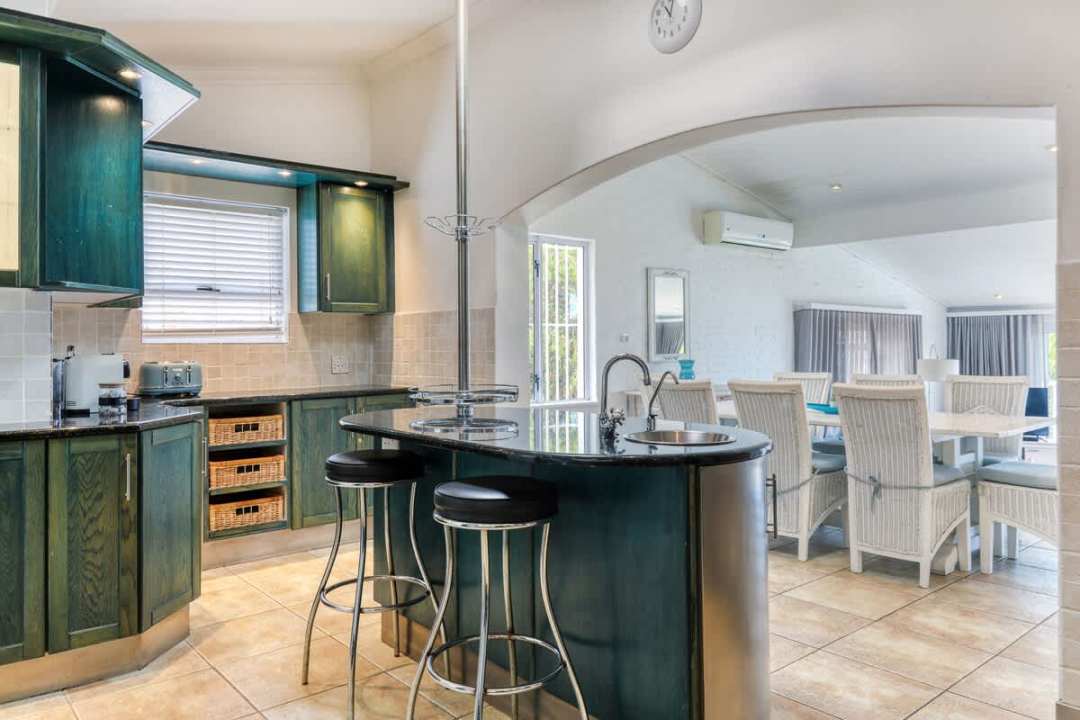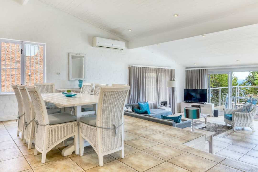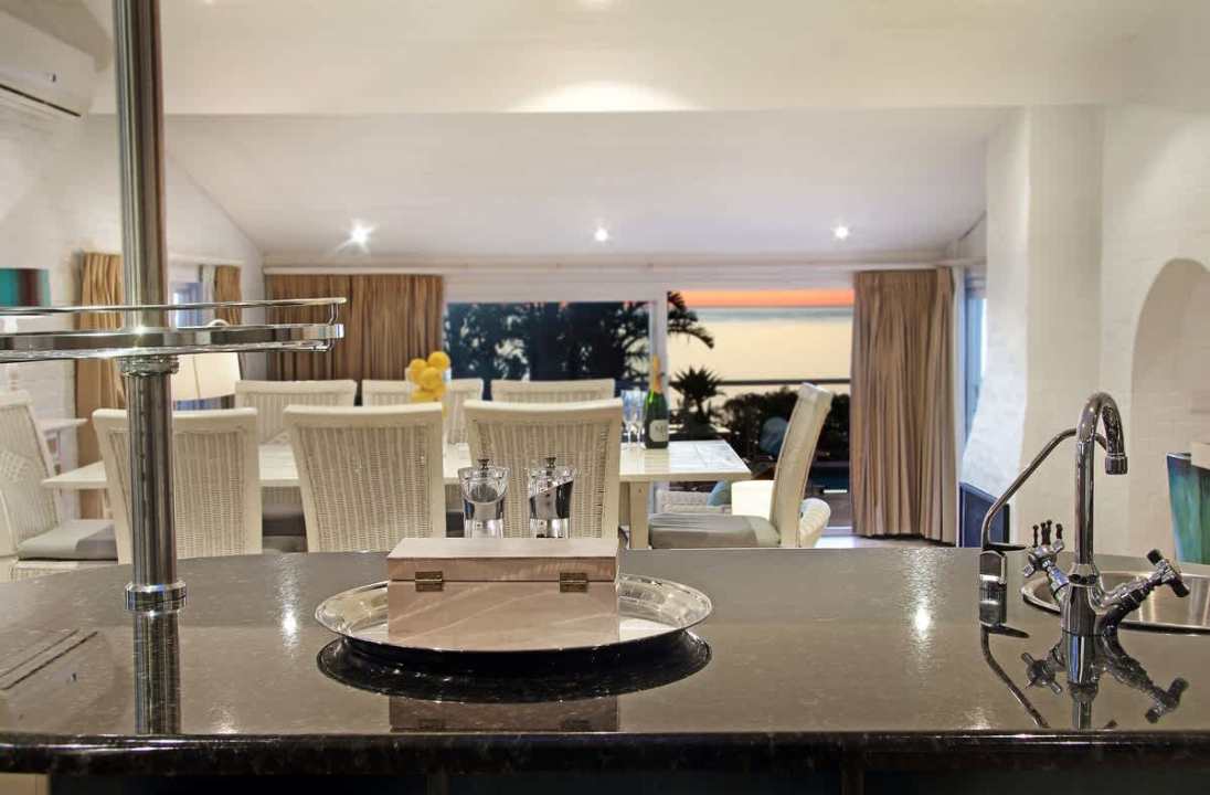 OUNGE/DINING AREA Open plan kitchen, lounge, bar and dining area Glass sliding doors leads directly onto pool deck Flat screen TV 8 Seater dining table Fireplace Guest bathroom Air-conditioning Ocean Views Informal bar area