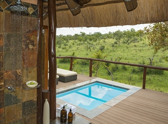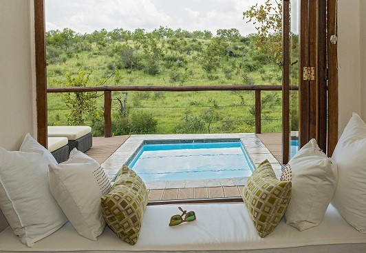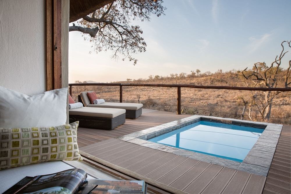 The large private viewing deck encompasses plush sun loungers conveniently placed beside the plunge pool to soak up the Madikwe sunshine all year round!