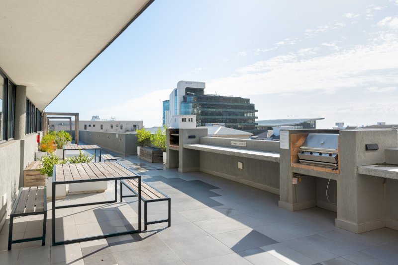 The building features a 500 m² communal rooftop entertainment deck with a swimming pool, BBQ facilities, and seating areas. A fully equipped indoor gym with mountain views allows guests to stay active while enjoying the city.