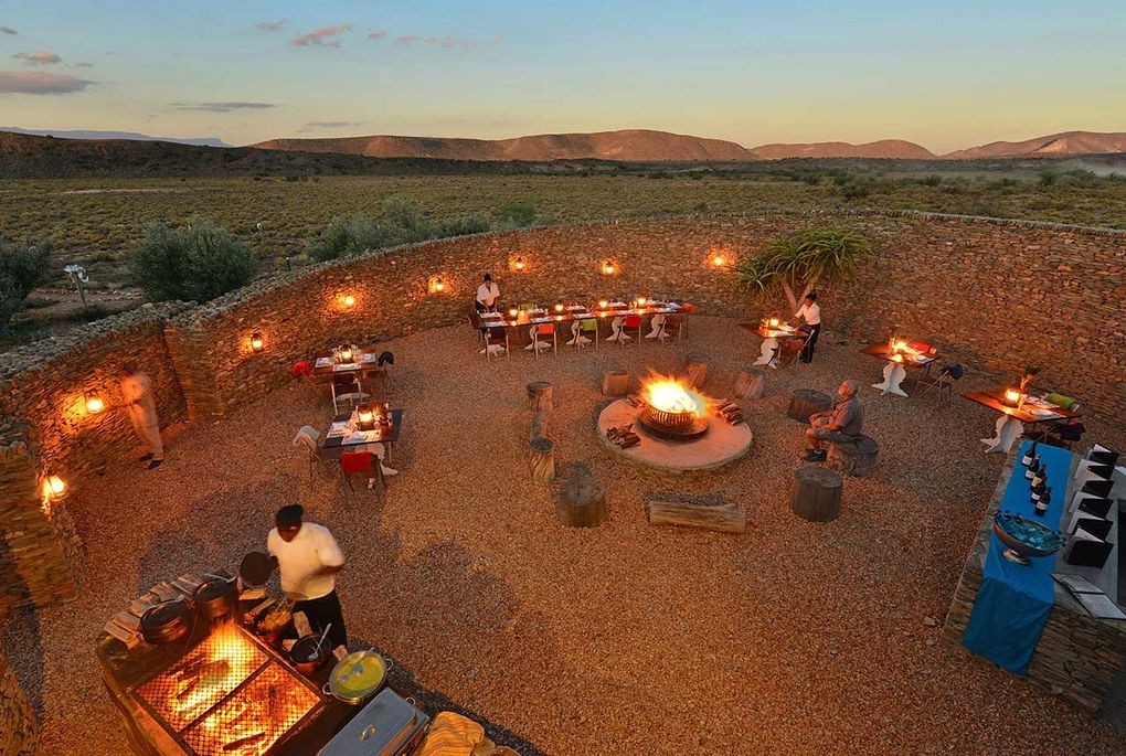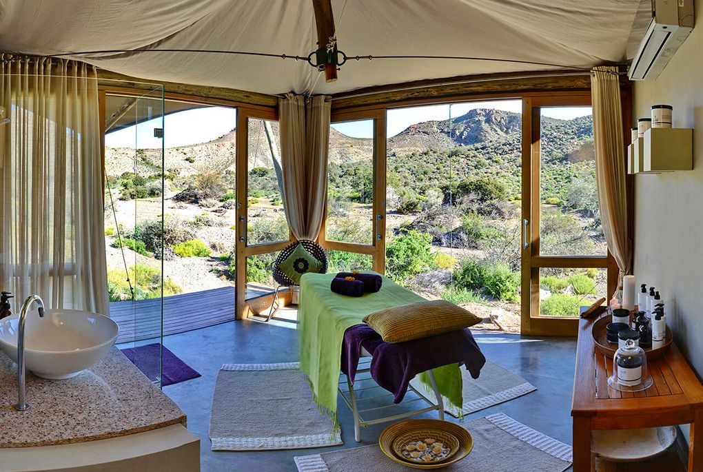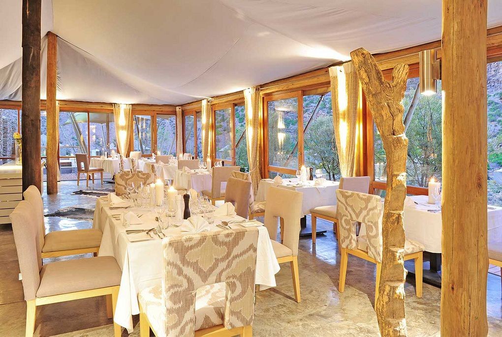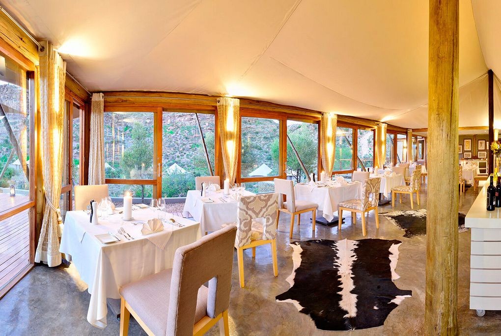 Embraced by striking rock formations, Dwyka Tented Lodge epitomises an atmosphere of seclusion. Nine luxury tents, with private decks and heated Jacuzzis, are set in a horseshoe bend of a dry Karoo ravine. The lodge stands proudly upon the beautifully weathered landscape reflecting the nomadic lifestyle of the Khoisan hunter-gatherers who once roamed this land. Rejuvenate your mind, body and soul at the Relaxation Retreat, which offers an extensive menu of treatments and therapies. Dine alfresco in the boma or unwind in the communal lounge.
