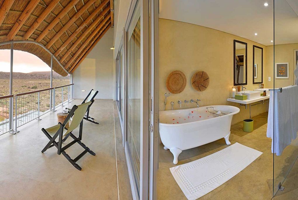 Breath-taking views of the undulating mountains and landscape embrace the historical Tilney Manor in a refuge of peace and tranquillity. The Manor offers six spacious open-plan suites leading on to private verandas. Guest experiences include authentic Karoo cuisine, luxurious lounges and a rim flow pool. Indulge your senses at the Relaxation Retreat that boasts a steam room and sauna while witnessing a pure African spectacle – a Karoo sunset.