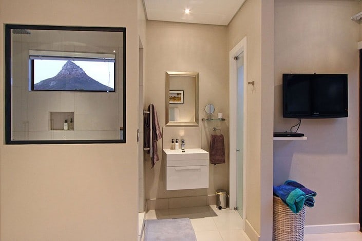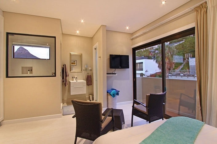 Mountview suite is a 1 bedroom suite (measuring approx. 35 square metres) with its own entrance, and spans out onto a small balcony with mountain views (including Lions Head, Table Mountain and the cable car, and the 12 Apostles). It sleeps two and features a spacious bedroom with queen size bed, separate bathroom with a large shower. Comfortably furnished, with an open plan lounge / dining area that slides open onto a balcony overlooking the mountain.