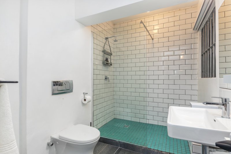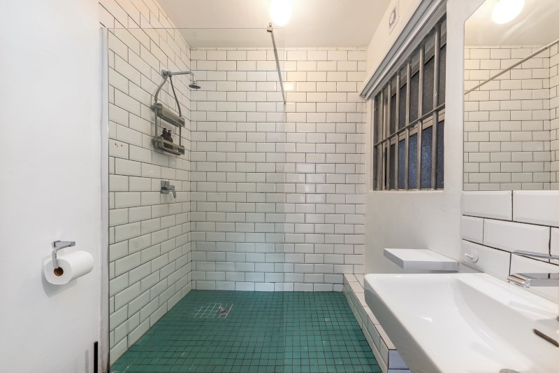 Separate bathroom with walk-in shower.
