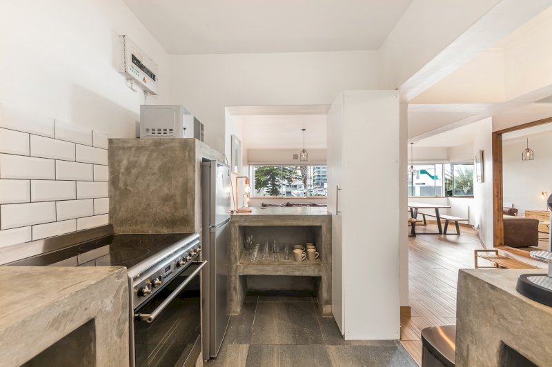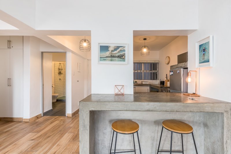 Fully-equipped modern kitchen with built in breakfast counter.