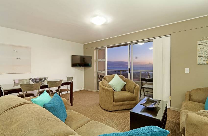 One of the best features of this 4 sleeper apartment is the uninterrupted ocean views, with Table Mountain visible from across the Atlantic Ocean.