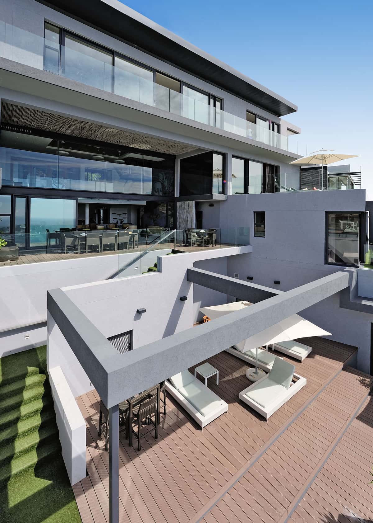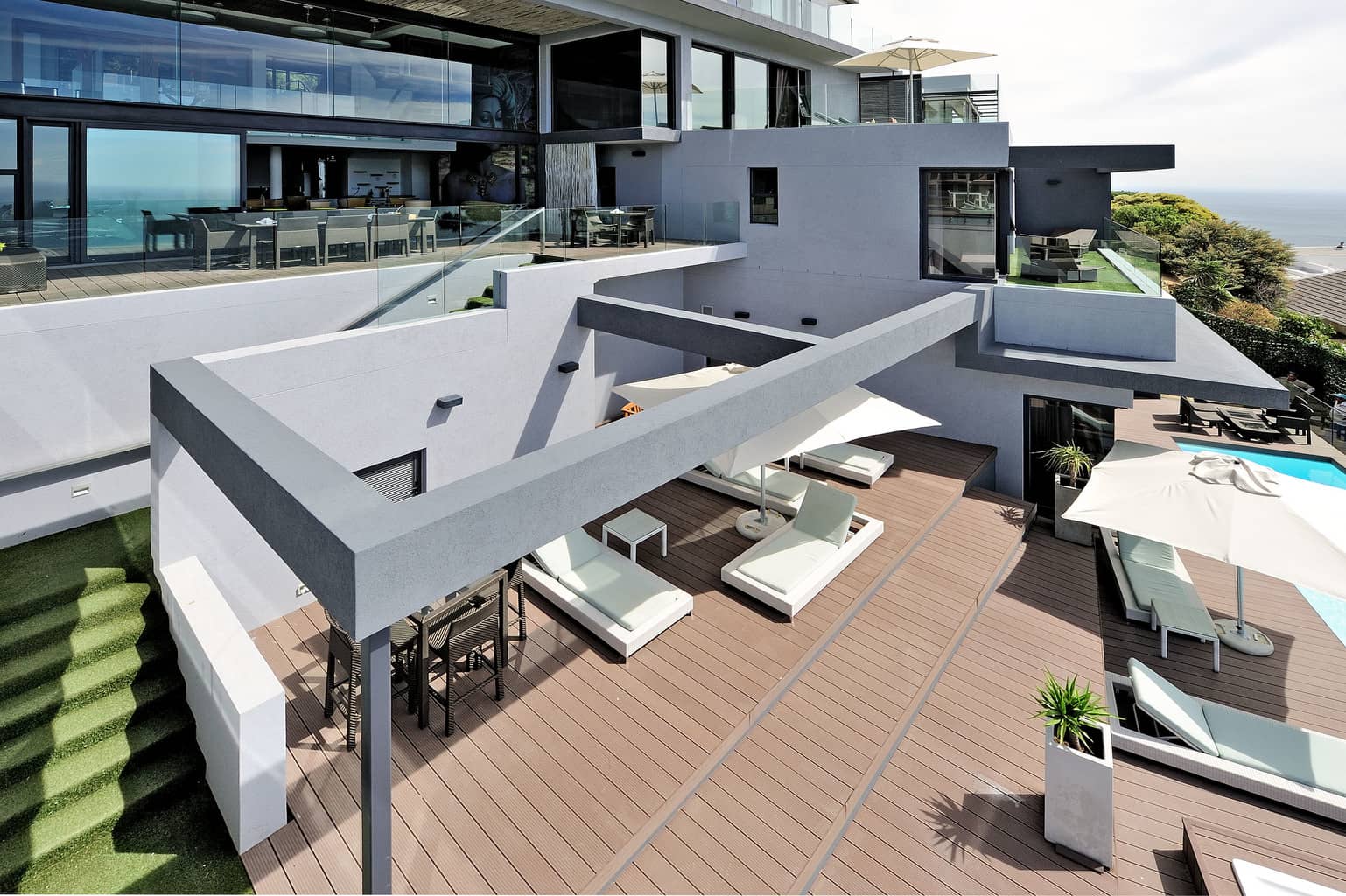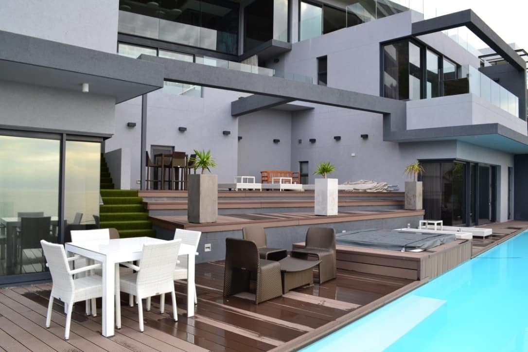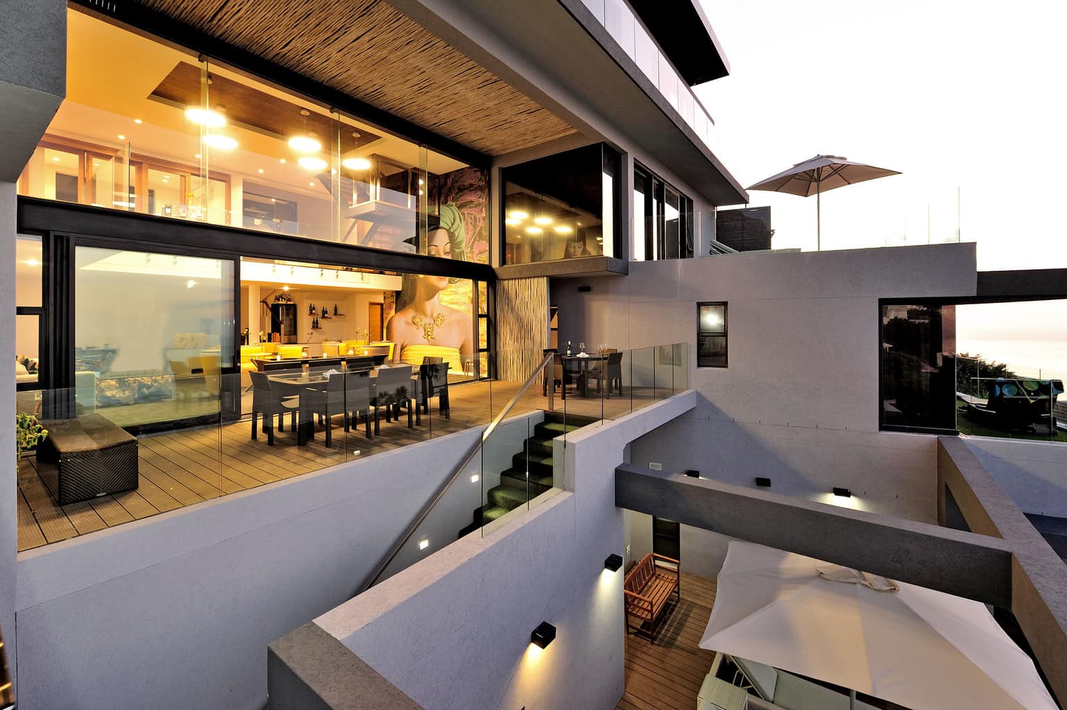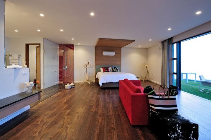 Roche Bobois chairs and enormous Tretchikoff prints complement the spacious interiors. Sit and sip a glass of Sea Star wine (cultivated in Franschhoek) looking over the infinity pool to the sea.