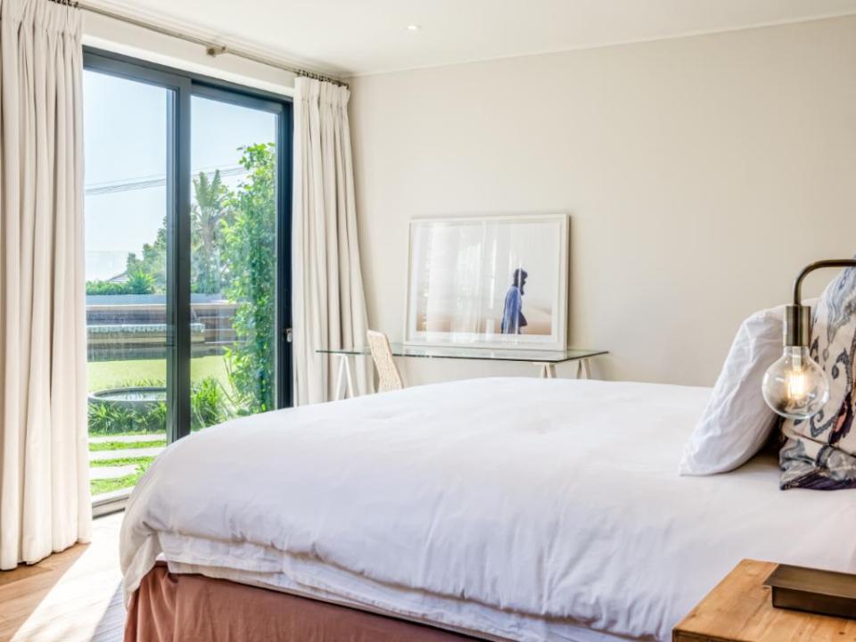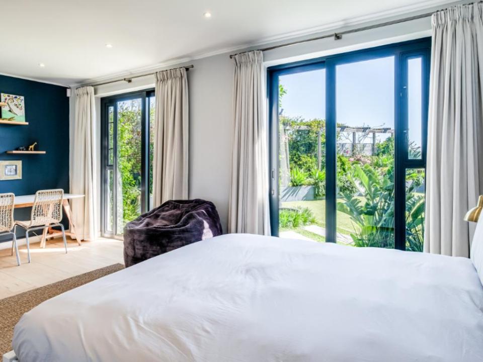 This modern and luxurious 4-bedroom villa is your home away from home. This property is designed for families and friends in search of a relaxing holiday experience in style and comfort. The villa consists of 4 airy bedrooms, each offering air conditioning for those warm summer nights. Your stay includes 3 well-appointed bathrooms, including one ensuite, one shared, and one dedicated bathroom, catering to the needs of all guests. The heart of the villa is the fully equipped, state-of-the-art kitchen, inviting you to cook savoury dishes and enjoy memorable meals together. The open-plan layout flows seamlessly, creating an abundance of space for both relaxation and socializing. Step outside into the spacious outdoor area, where you’ll find a private swimming pool, garden, and braai facilities. The kids will be delighted with the trampoline and swing set, ensuring endless hours of fun for the entire family. Additionally, the property is equipped with an alarm system, providing peace of mind throughout your stay. With air conditioning present throughout the property, it’s easy to cool off during warm days or maintain a comfortable temperature at night.