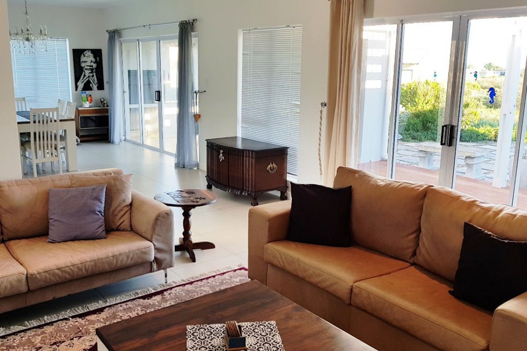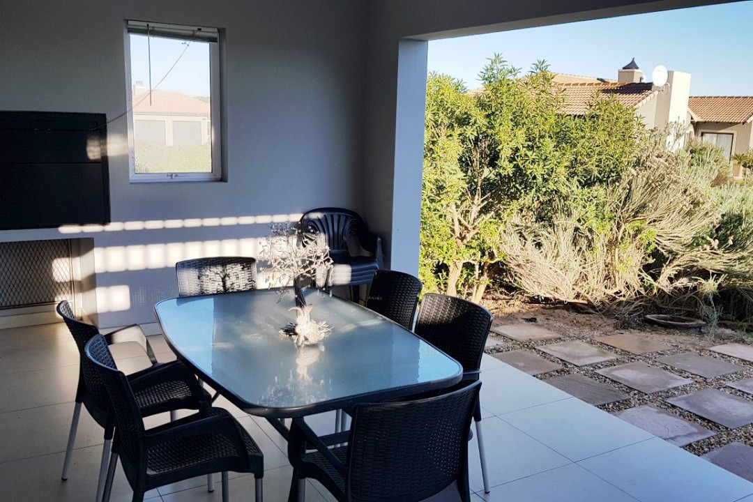 Seahorse is situated in the secure and tranquil Langebaan Country Estate where springbok, duiker and steenbokkies are roaming wild. This single story, 3 bedroom house is modern and spacious with an open plan living area. The living lead to a built-in outside braai area.