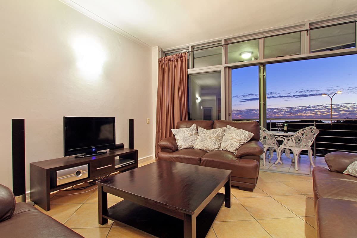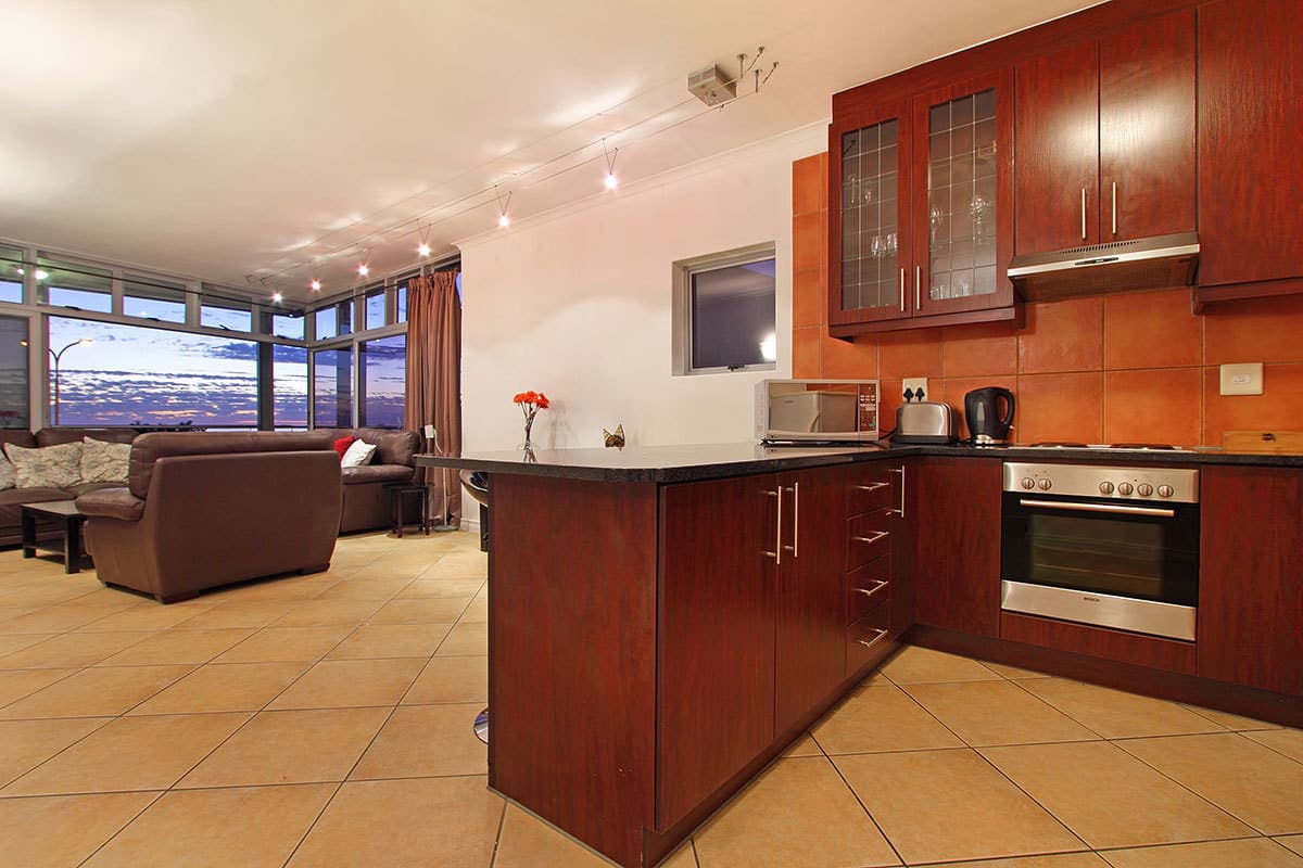 Seaside Village A16 is a well furnished three bedroom two bathroom apartment. There are two double beds and 2 twin beds in this apartment, which sleeps 6. There are views of the ocean and Table Mountain from the balcony. This flourishing open plan lounge conjoins with the fully equipped kitchen suitable for all your essential needs whilst on vacation. The overall style of this apartment is modern comfortable, with elegant flooring subsists of carpet and tiles.