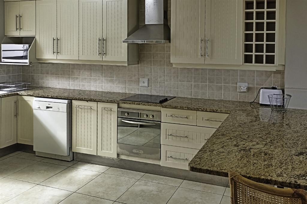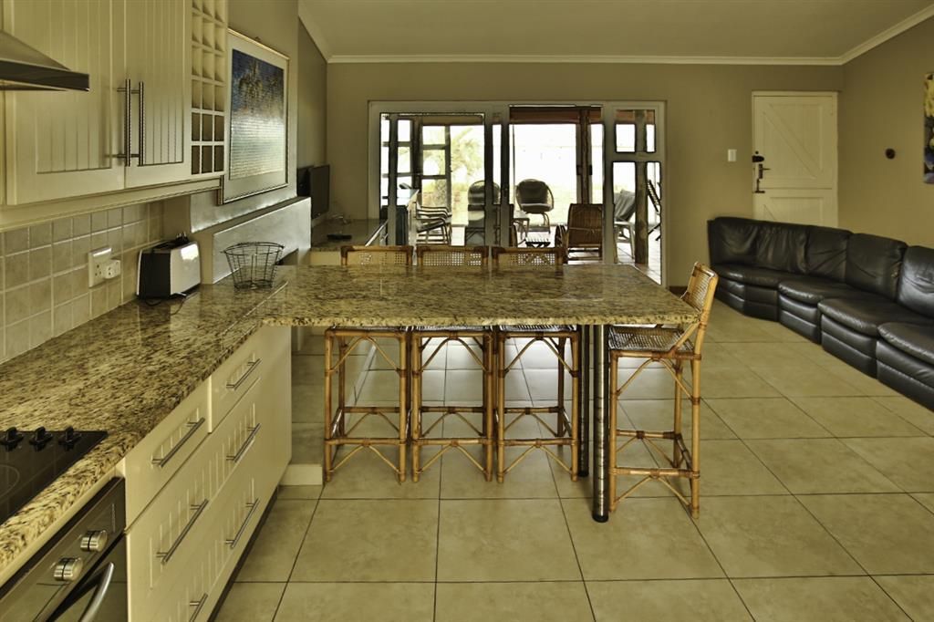 The house has a large thatched enclosed stoep, with a built-in braai, serving as a living and dining area. The house also has an enclosed garden and a lovely large lawn.