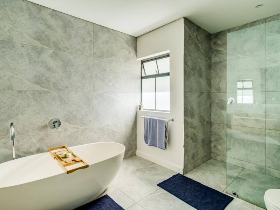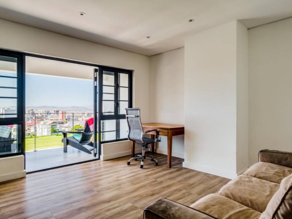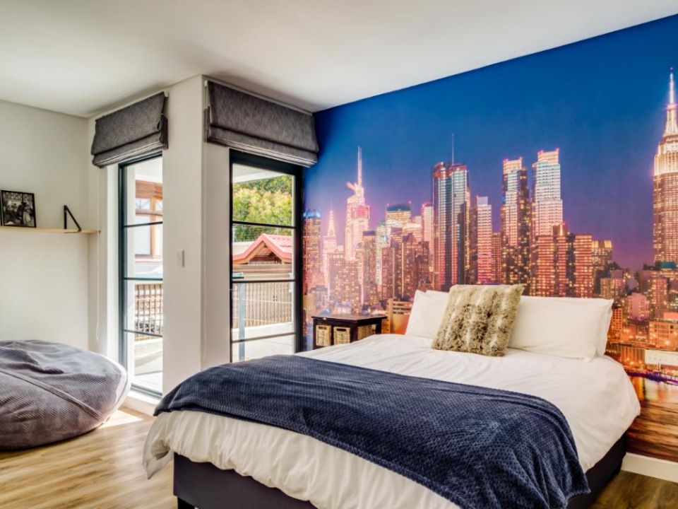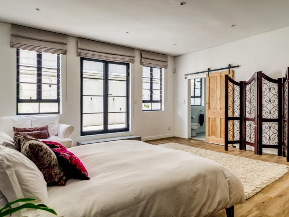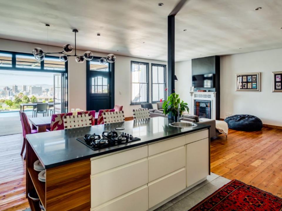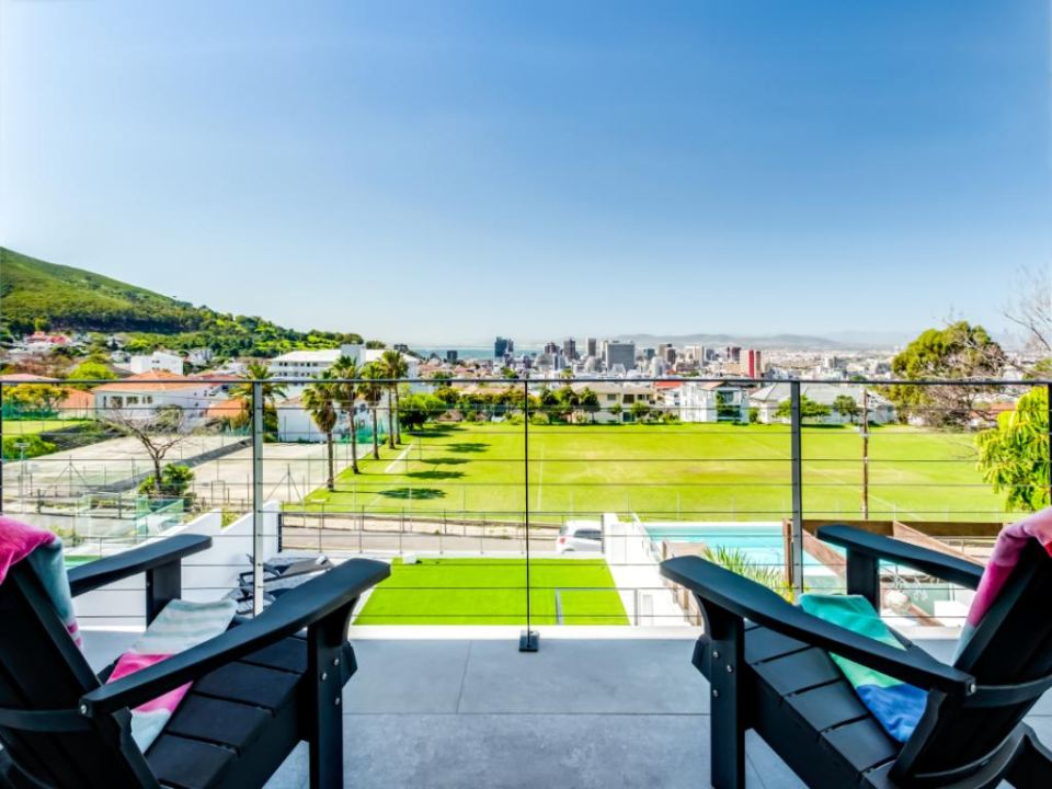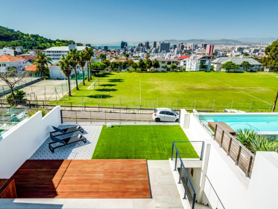 Centrally located in Tamboerskloof, this modern home is not far from the buzz of Cape Town. This property has a great outdoor area with lovely views of the city and ocean. There is outdoor dining, a braai, and a swimming pool, perfect for those Summer evenings. The main living area downstairs is open-plan, which makes it a great space for coming together. The kitchen is fully equipped with everything you will need for a holiday rental. The third bedroom is just off the living space downstairs. It is a spacious room with an en-suite. The Master bedroom and en-suite are on the top floor and looks out over the city. It also has access to the upstairs balcony where you can enjoy a morning coffee watching the sunrise. The second bedroom is also on this level and has a dedicated bathroom. There is a second lounge on the top floor with a balcony. This home is a great place to spend a holiday in Cape Town with friends or family.