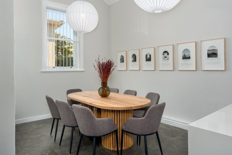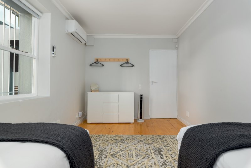 This vibrant 2 story townhouse/cottage seems to emulate the eclectic soul of Cape Town. A lot of thought and consideration has gone into making the home the perfect family escape. Modern appliances and finishes with tasteful use of colour throughout.The open plan lounge, kitchen and dining area features designer furnishing and modern appliances throughout. The lounge opens onto a covered balcony with outdoor furniture and a Braai/BBQ. Adjacent to the lounge is a loft-style office space or work area with desk space.
