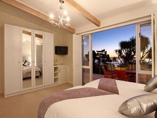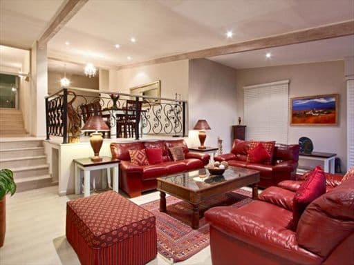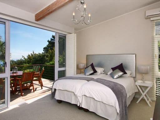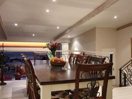 Large Burgandy coloured leather couches and light wood floors frame this space as one for comfortable relaxation. Concertina-styled American shutters fold away to reveal panoramic, uninterrupted Sea Views. Leading directly off the living room, the wooden deck offers yet another setting to enjoy peaceful encounters with the sea and mountain views famous in Camps Bay. Revel in the comfort of any one of the 5 large bedrooms, each boasting flair and elegance accentuated by stylish finishings. The first two bedrooms are positioned on the dining room level, enjoying partial sea views.