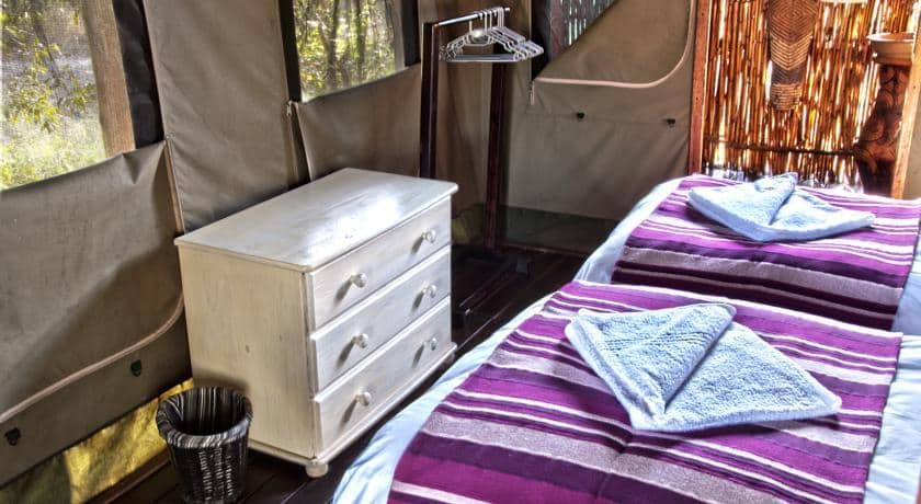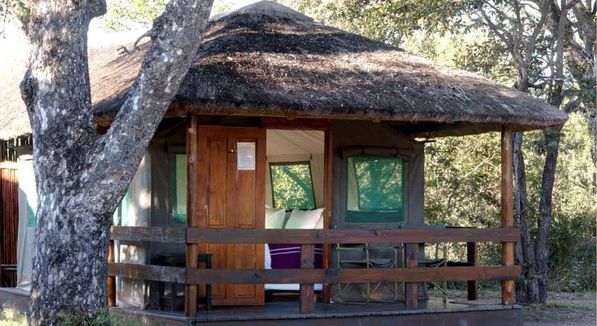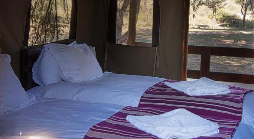 Shindzela is a comfortable tented bush camp, set on the banks of a dry riverbed, facing a small watering hole. We offer an authentic African safari experience in an unfenced, private and natural wilderness environment. Our Safari Tents can either be made up in twin or double bed accommodation.