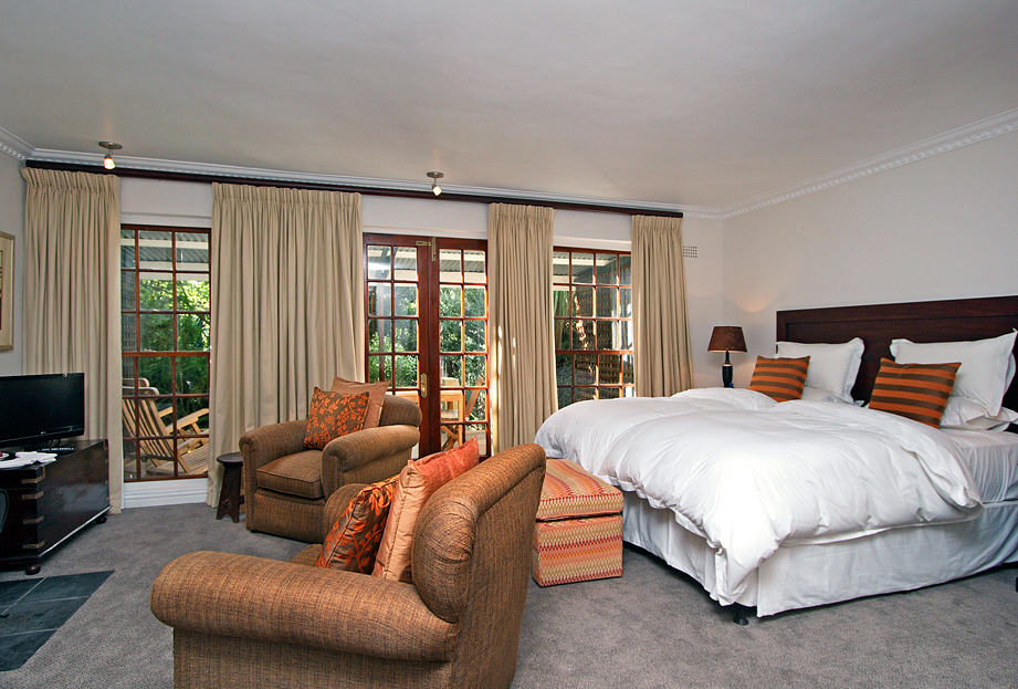 Nestling on Constantia Nek, amongst Organic vineyards and Fynbos vegetation the 31 suites, cottages and lodges each sleep two to six guests and all are individually designed and decorated. The five luxurious Manor Suites are situated adjacent to reception.