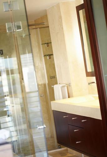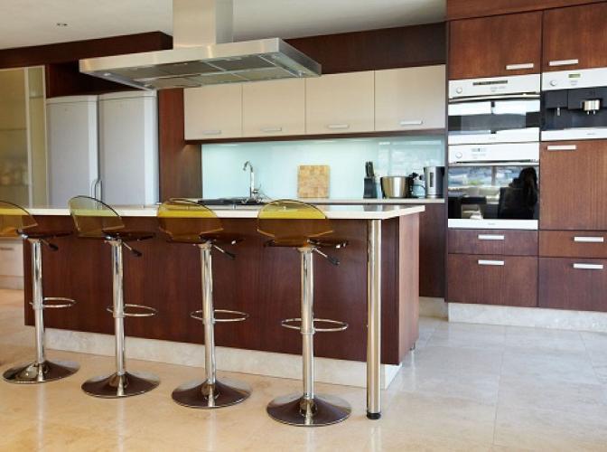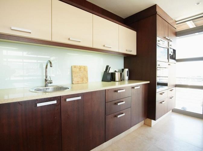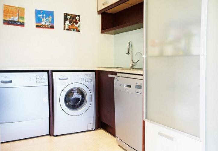 The apartment is on 2 levels with the living area downstairs and the sleeping quarters upstairs. There is a balcony both upstairs and downstairs. The kitchen is equipped with Miele and other European appliances including a espresso maker and steak griller. There is also a scullery area off the kitchen with laundry facilities.
