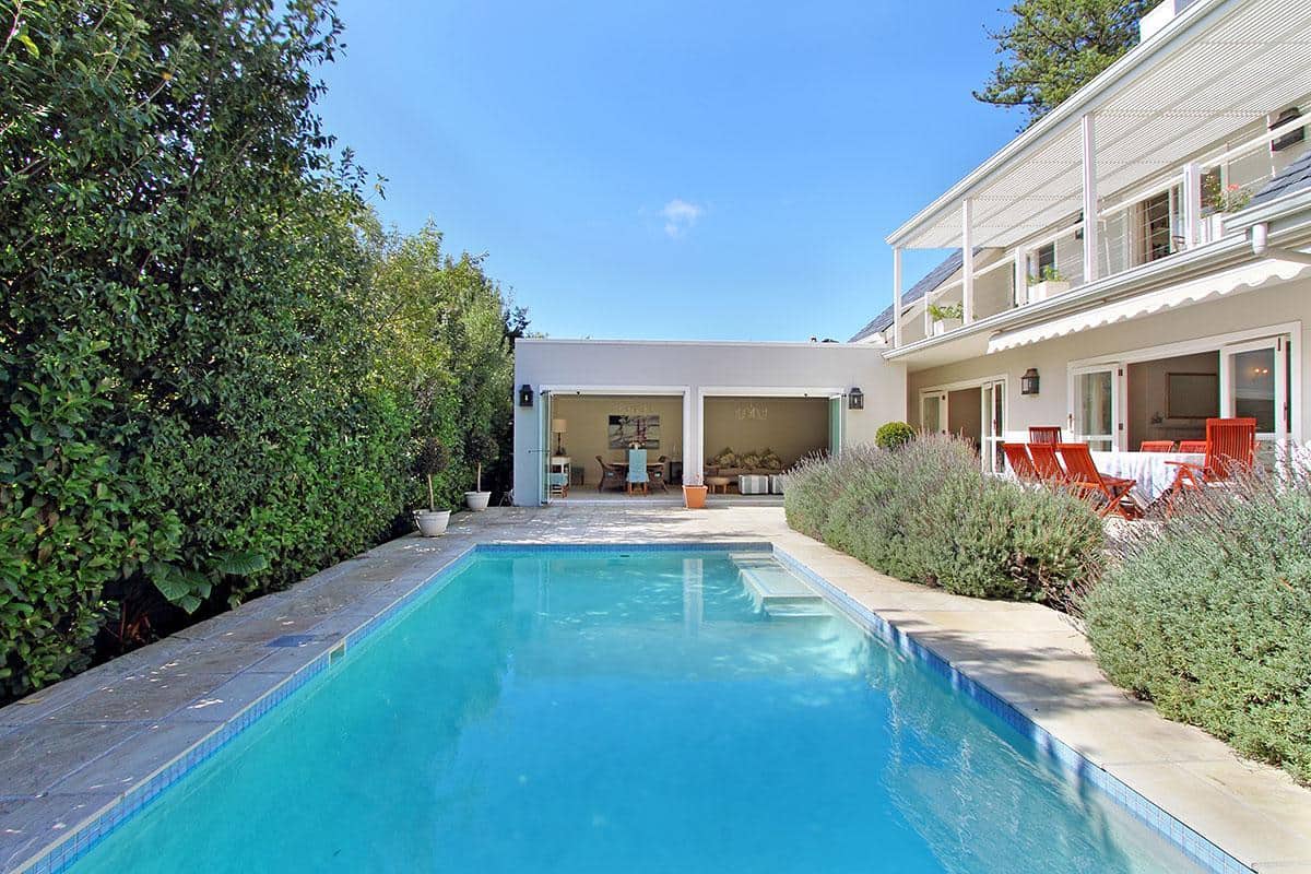 It is a lovely villa with pool in a sunny position. It provides a comfortable environment where guests can rest and unwind; catch some warm African sun lounging at the pool, take a walk in Kirstenbosch, or enjoy a glass of Constantia Valley wine while watching the sun set behind the mountain. It is a great house for families or groups wanting to explore the area.