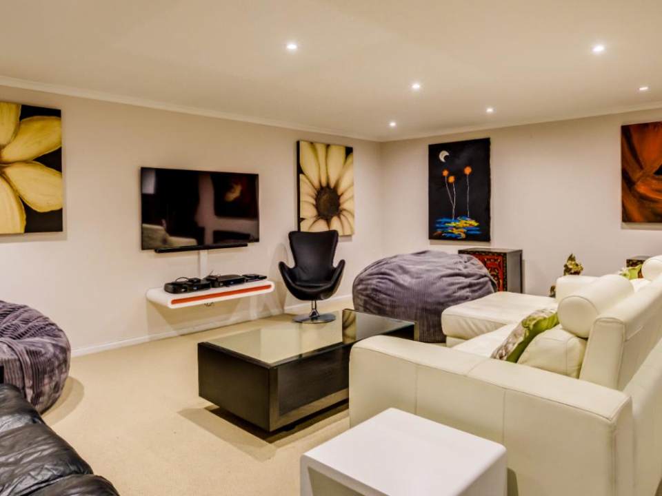 Designed for entertaining, the lower floor houses a fully equipped kitchen, breakfast room, formal lounge and dining areas, two TV rooms, and multiple decks with a jacuzzi and built-in gas braai. Outdoor spaces include a swimming pool, a large garden with soccer nets, and multiple terraces to enjoy Cape Town’s iconic sunsets.