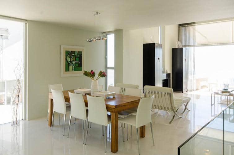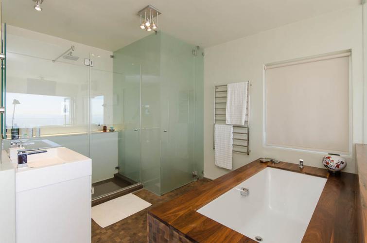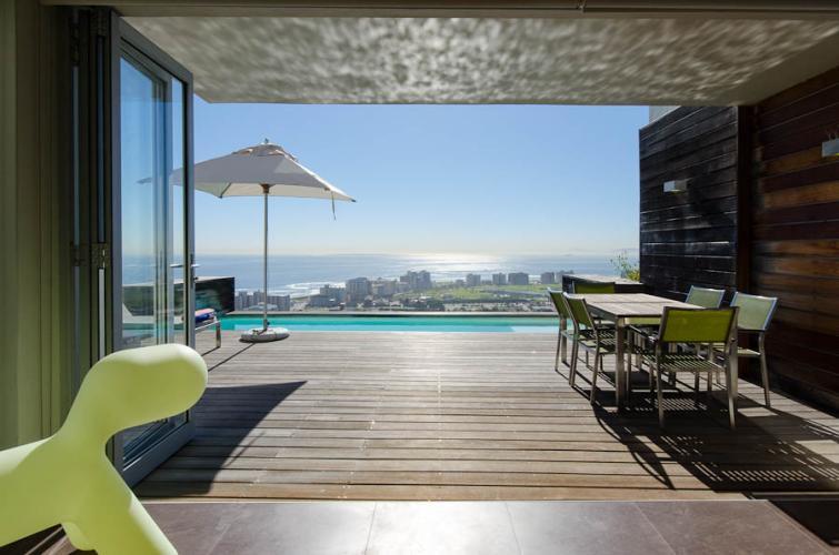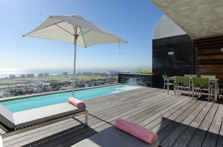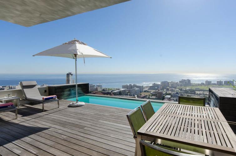 This holiday haven is situated in a very quiet and private road with the mountain as its backdrop, and features a large swimming pool, amazing bar and a fireplace – an absolute treat. It has a chic contemporary feel with openness akin to the vast expanses of the wide ocean. The house is centrally located to the hub of the city, Waterfront and the beachfront. This is an entertainers dream with formal indoor and informal outdoor entertainment areas.