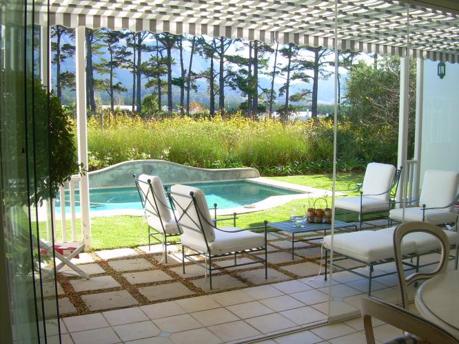 Villa Steenberg Nathalie is a lovely villa located in a prime position in Constantia/Tokai on the prestigious golfing estate – Steenberg. It boasts lovely views of the mountains and estate. The villa is very comfortable and has a large living area and dining room that leads onto the outside terrace to the pool. The kitchen area is delightful with another dining area. All 4 bedrooms are en-suite and two open to the pool area. There is also a separate study.