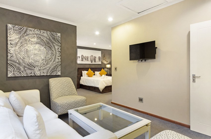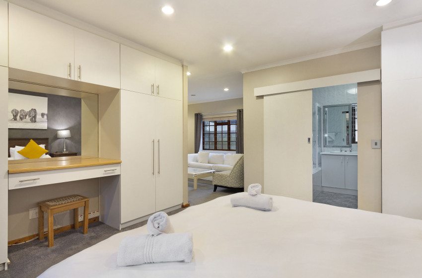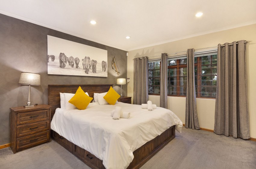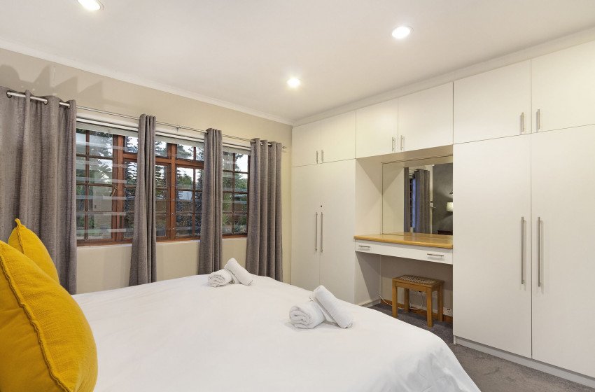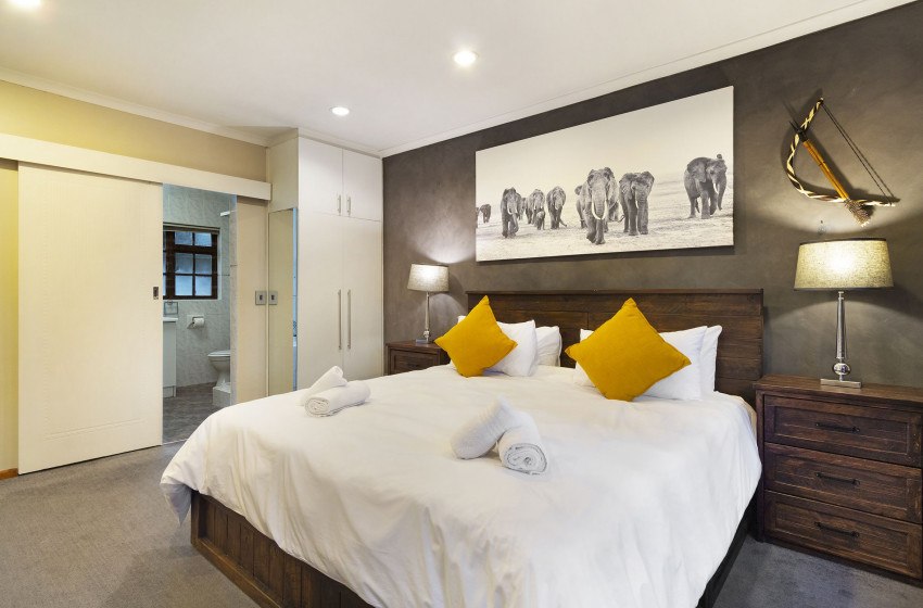 The home houses three spacious bedrooms with the inclusion of two bathrooms. The main bedroom and second bedroom; offer a queen bed, with the first bedroom having access to a private en-suite. The third bedroom sports a double bed and has access to the shared bathroom with bedroom 2. There is a guest toilet for quick access to all guests. The bedrooms are stylistically modern, with many subtle design cues to create character and ambience unique to each room.