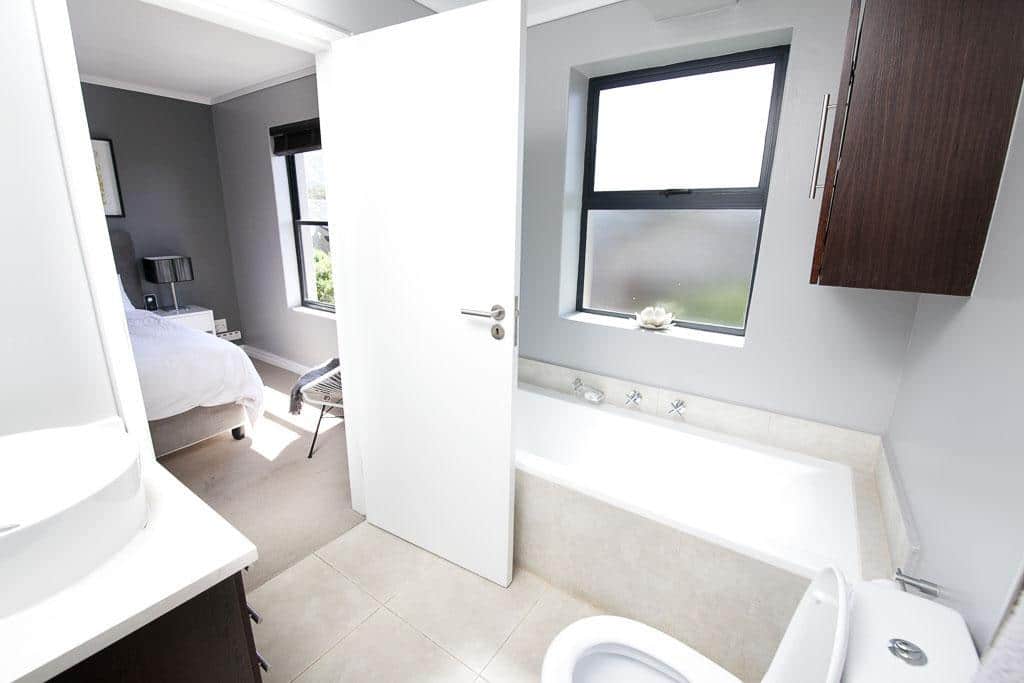 In the sought after secure complex you’ll find this luxury two bedroom Stonehurst apartment in Cape Town’s southern suburbs. The apartment is modern and minimalistic with no clutter. The two bedrooms are upstairs, with ensuite bathrooms. The bathrooms have both baths and showers.
