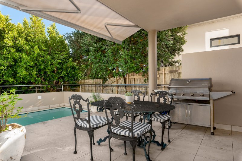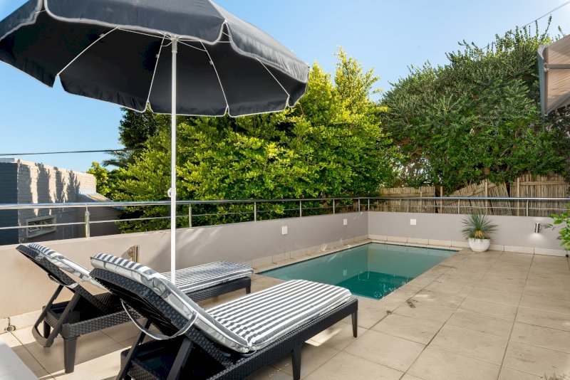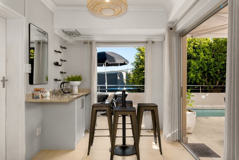 The private outdoor area is made for laid-back Cape Town living. A sparkling swimming pool, relaxed seating areas, and an alfresco dining space invite long afternoons under the sun.