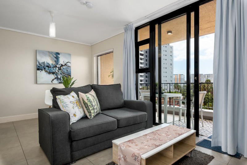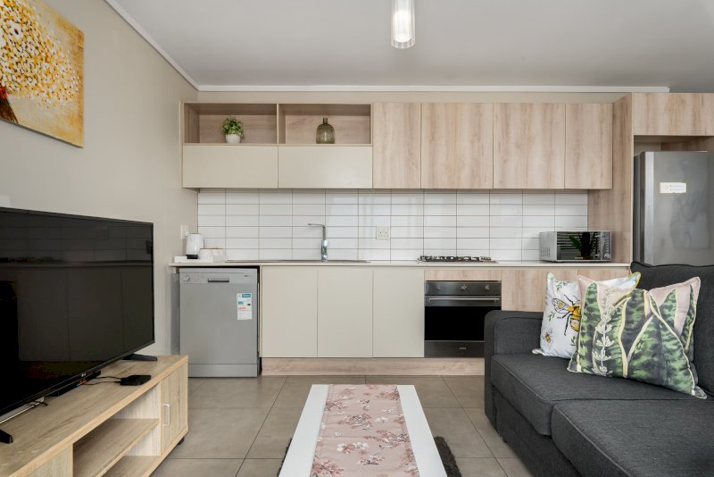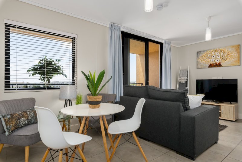 This modern apartment has modern contemporary design elements and finishes that strike the right balance between elegance, style and functionality making it the perfect living space for those travelling for business or leisure. This 1 bedroom unit has an open plan layout that boasts a fully equipped kitchen, leading onto a living-cum-dining-area. The dining area has comfortable seating, perfect for sharing a home-cooked meal while the living room opens out onto a spacious balcony with unparalleled views of the Intaka wetlands.