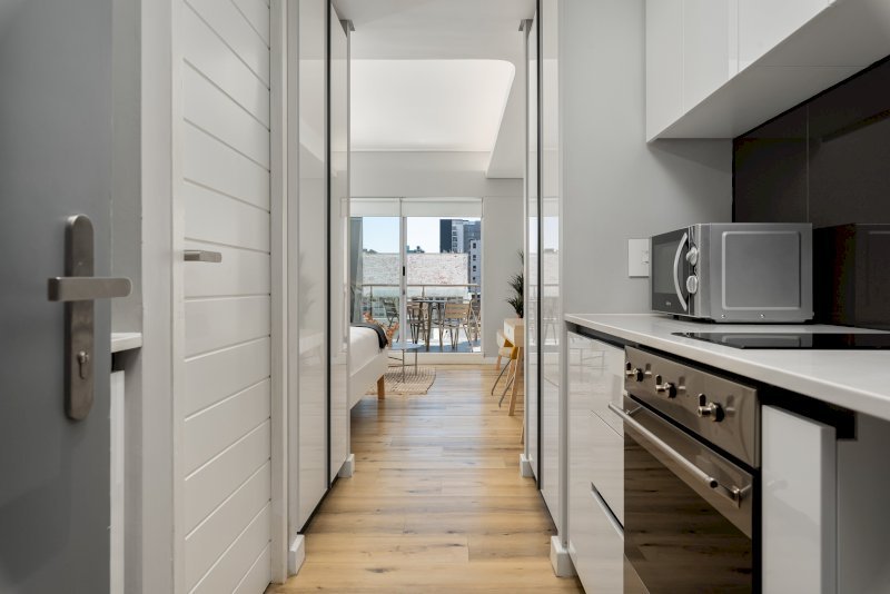 Stylish studio apartment in Cape Town CBD. This contemporary unit blends modern design with comfort, offering an ideal urban living experience. Located in the vibrant Loop Street area, residents can indulge in the multitude of amenities and attractions at their doorstep.