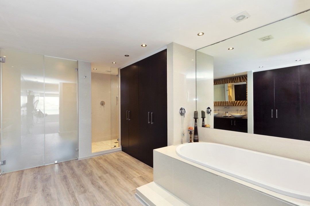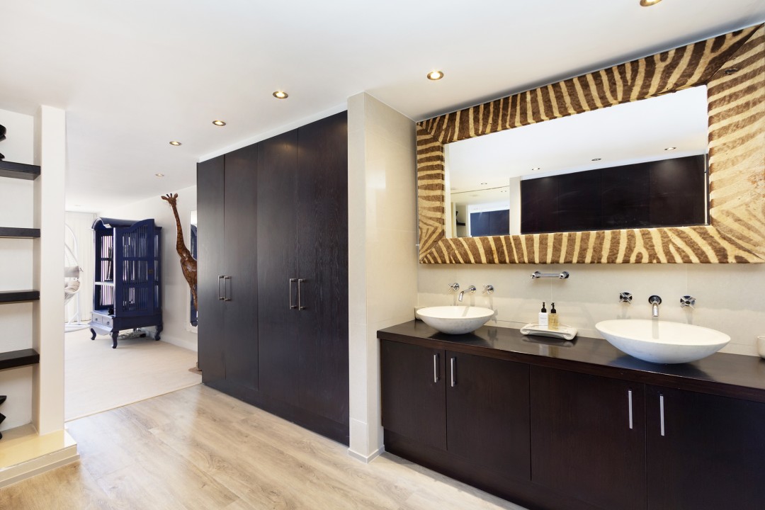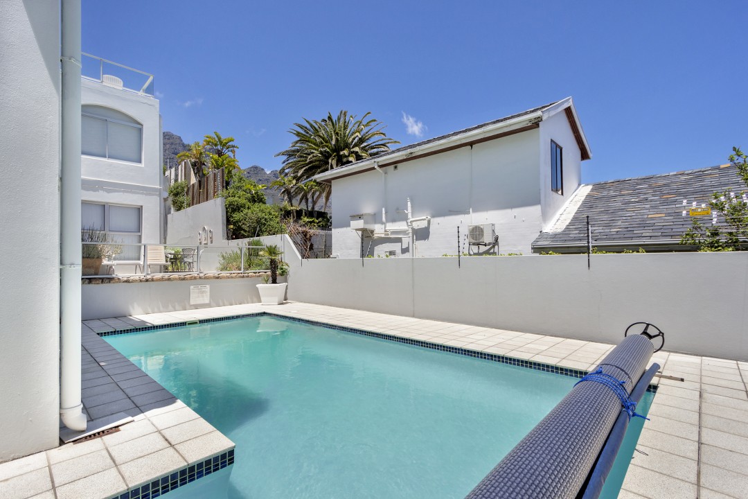 The townhouse, one of only six units in the complex, is fully secured and alarmed and has dedicated parking bays on the pool level with direct access from the unit. A short, easy stroll will take you down to the palm-lined beachfront of Camps Bay and its many restaurants, cafés, and buzzing beach bars, while the beautiful blue-flag beaches of Clifton are five minutes away.