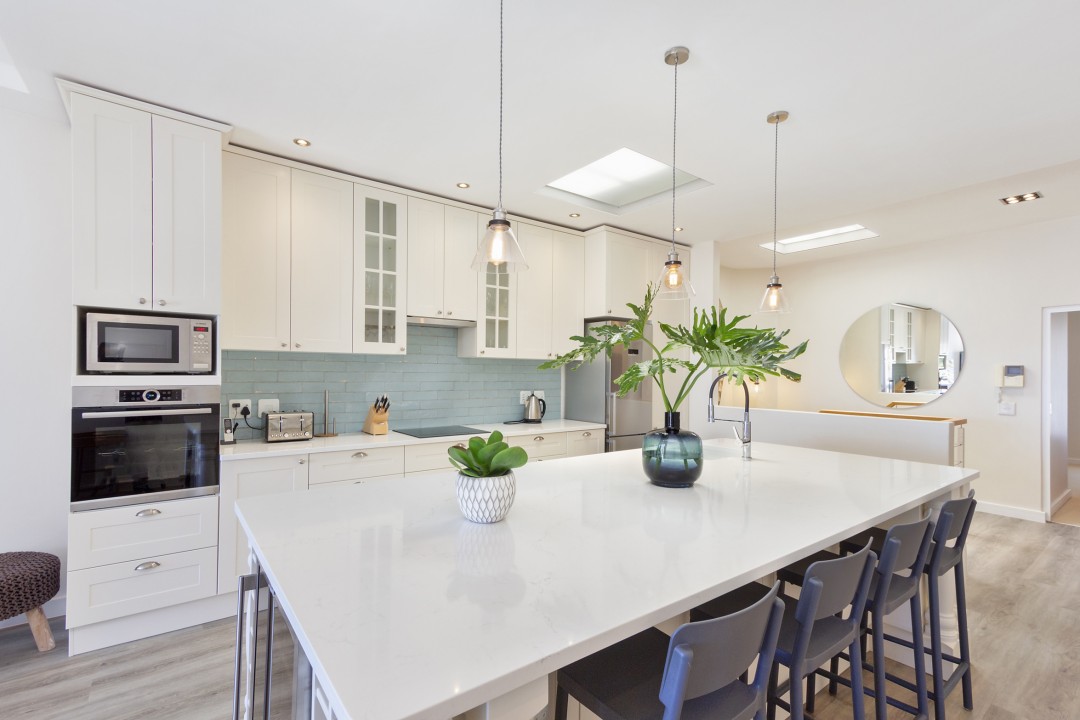 - Open plan upstairs area with kitchen leading through to dining space that follows onto the balcony
