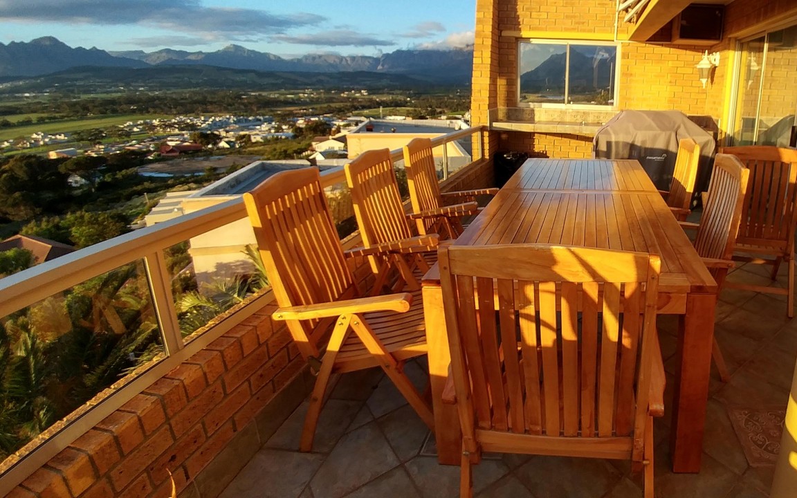 On a clear day you can see Table Mountain and Simons Town in the distance, as well as the majestic Hottentots Holland Mountain range. And once the sun has gone down in all its magnificent African splendor, the romantic night lights over the Helderberg continue the magic.